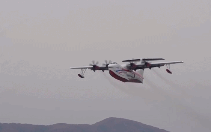 我国自主研制的大型水陆两栖飞机AG600,近日在吉林省松花湖水域圆满完成了首次野外环境的汲水投水演练。