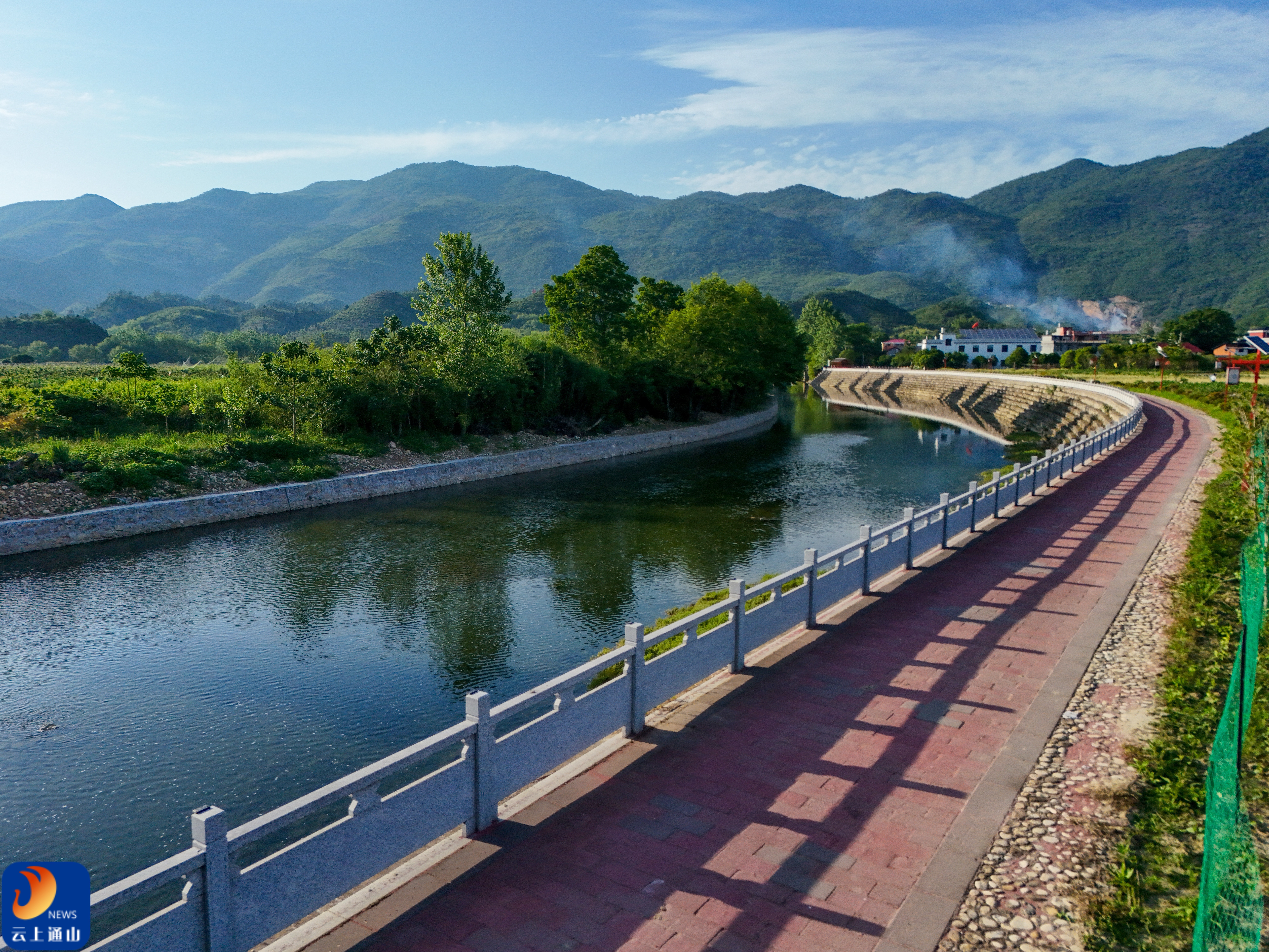 ▲沿河休闲步道,临水而建,与周边山水、村落相融,既便利村民出行,也成了休闲好去处。