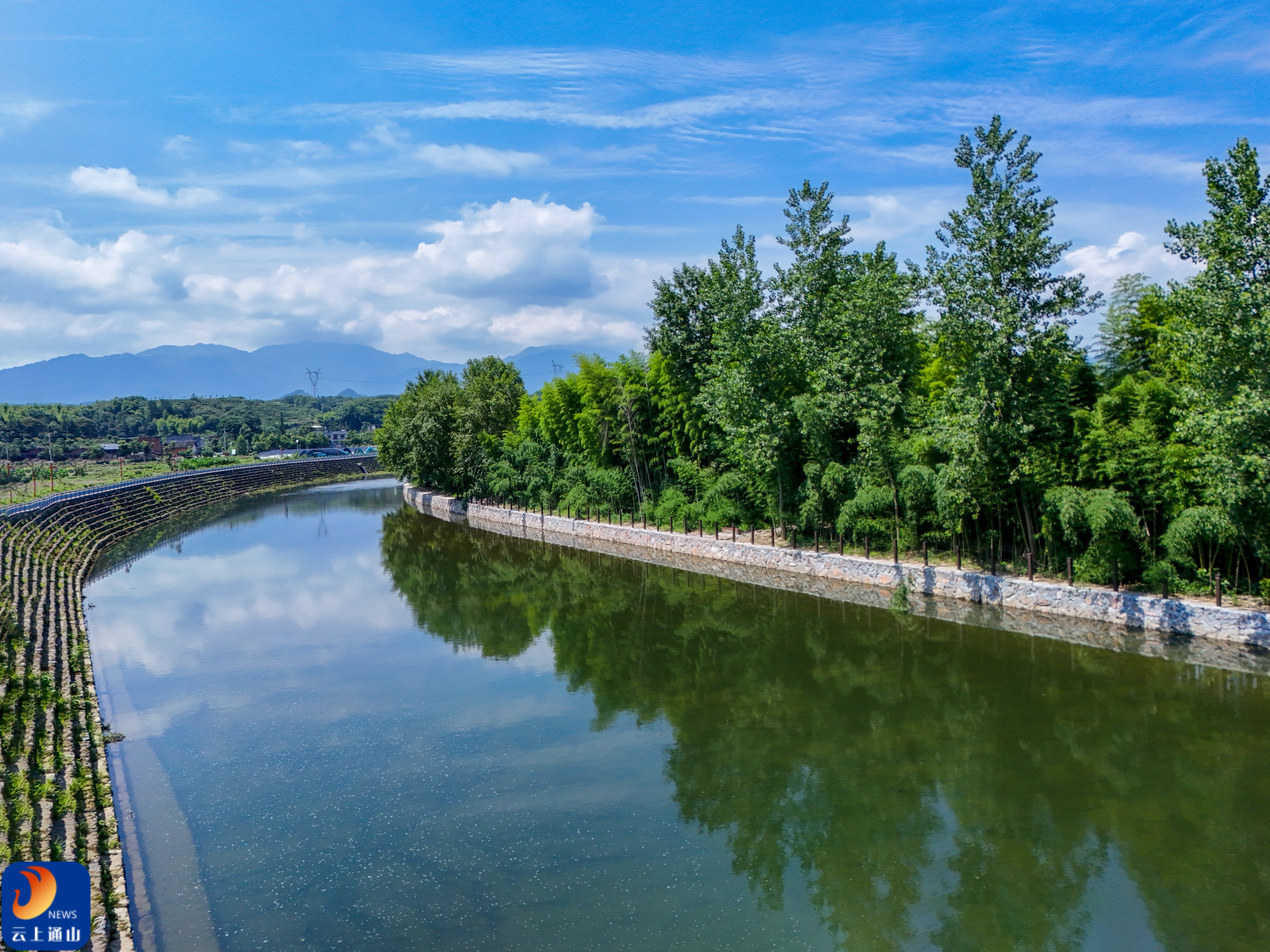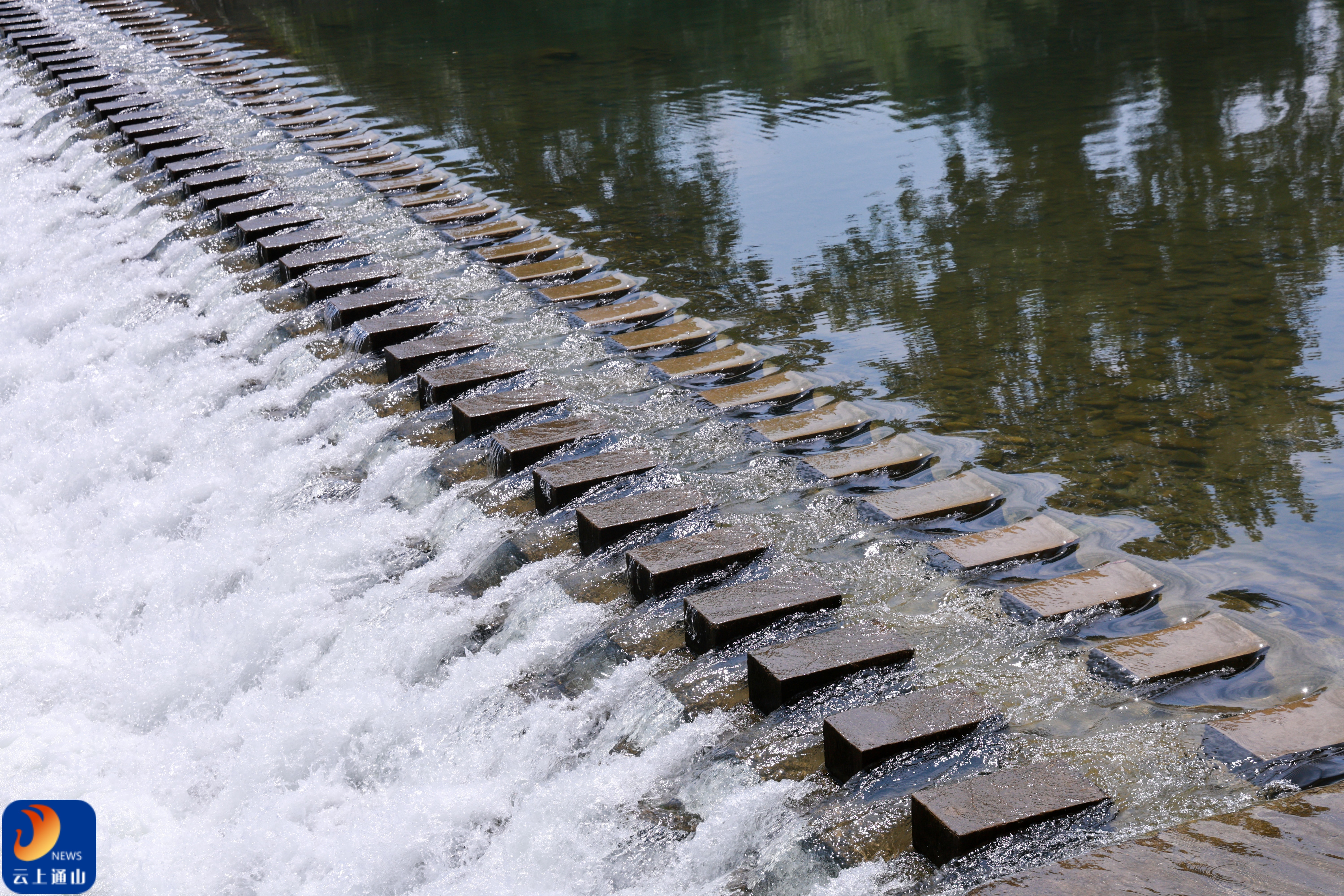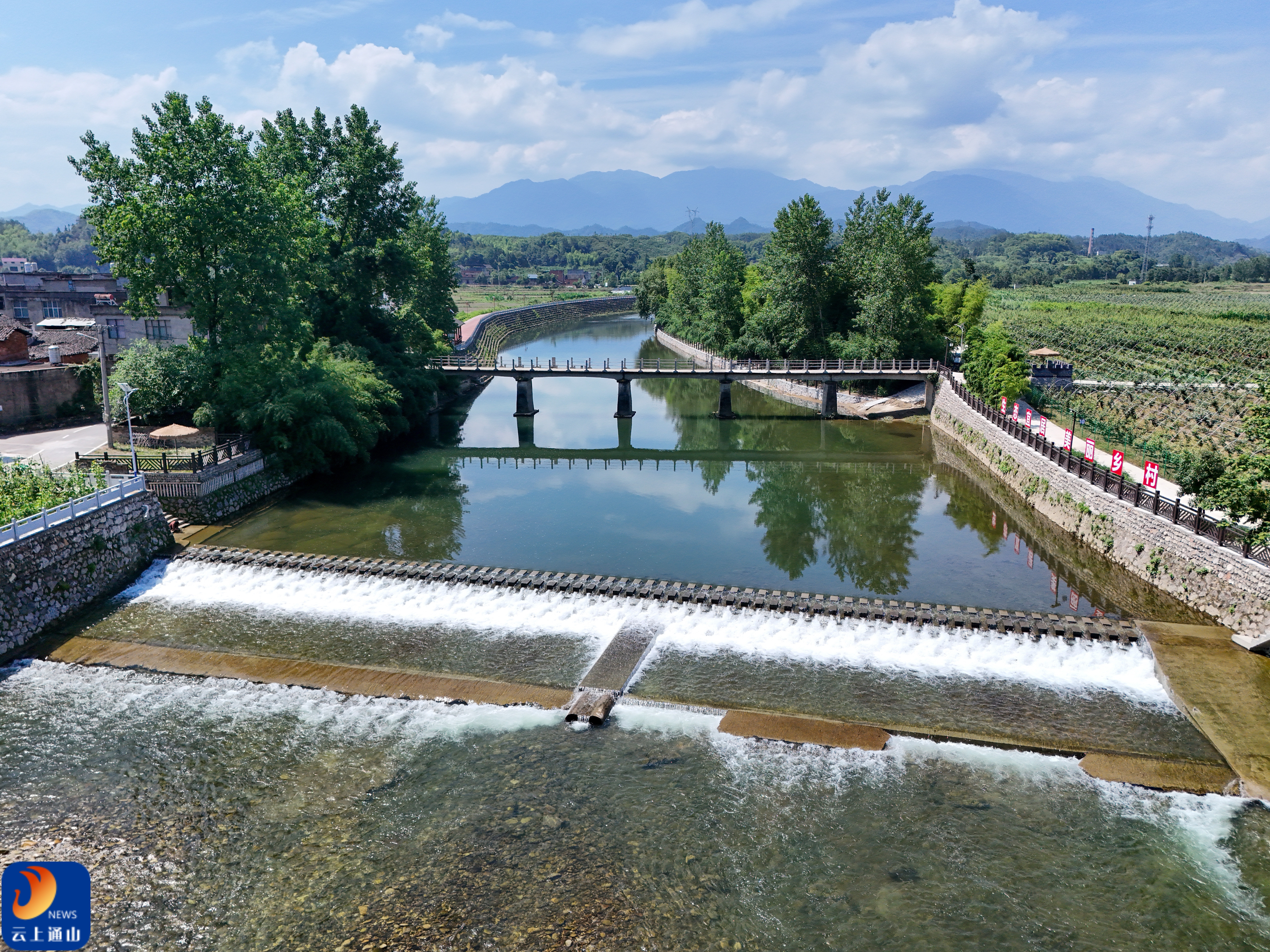 ▲河水清澈,水坝流水潺潺,与沿岸绿意共同绘就乡村美好景致,见证着乡村的发展与蜕变。