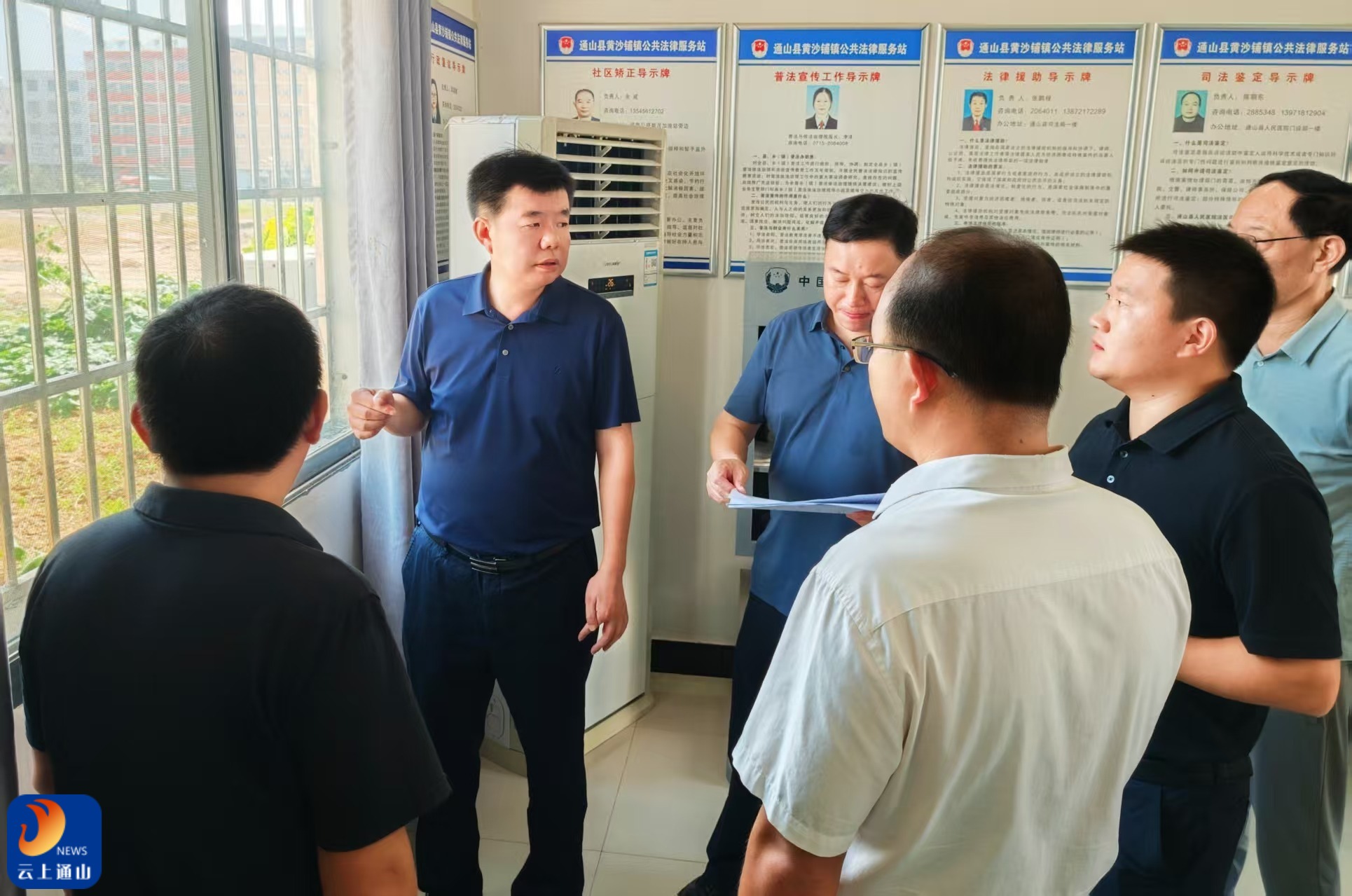 ▲县委书记、县长吴涛在黄沙铺镇综治中心了解相关工作情况。