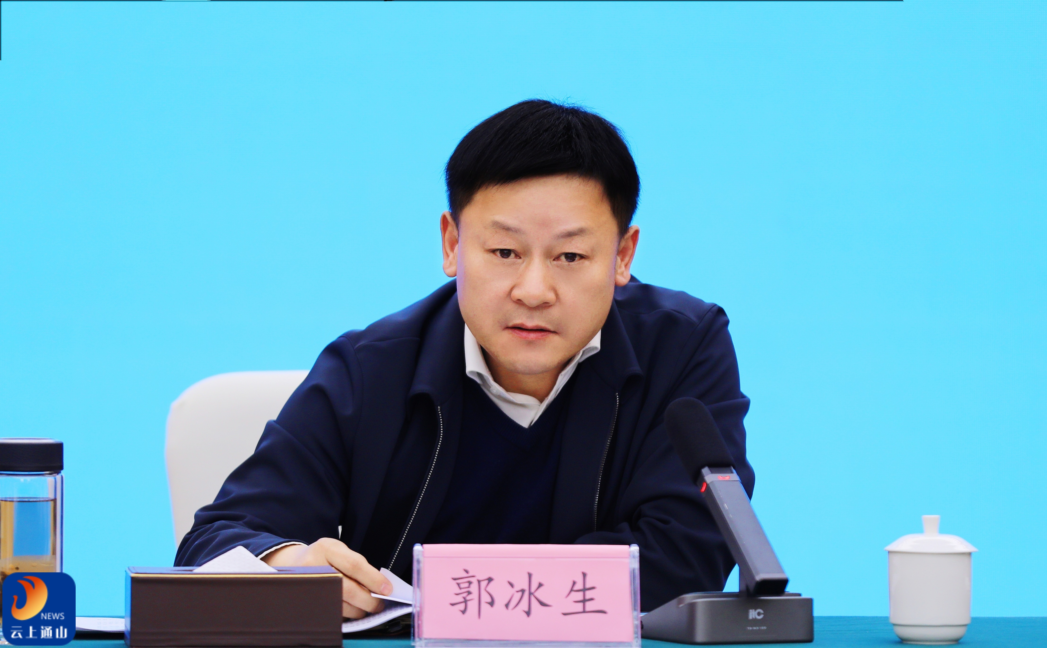 ▲市交通运输局党组书记、局长郭冰生对全市普通公路建设工作提出要求。