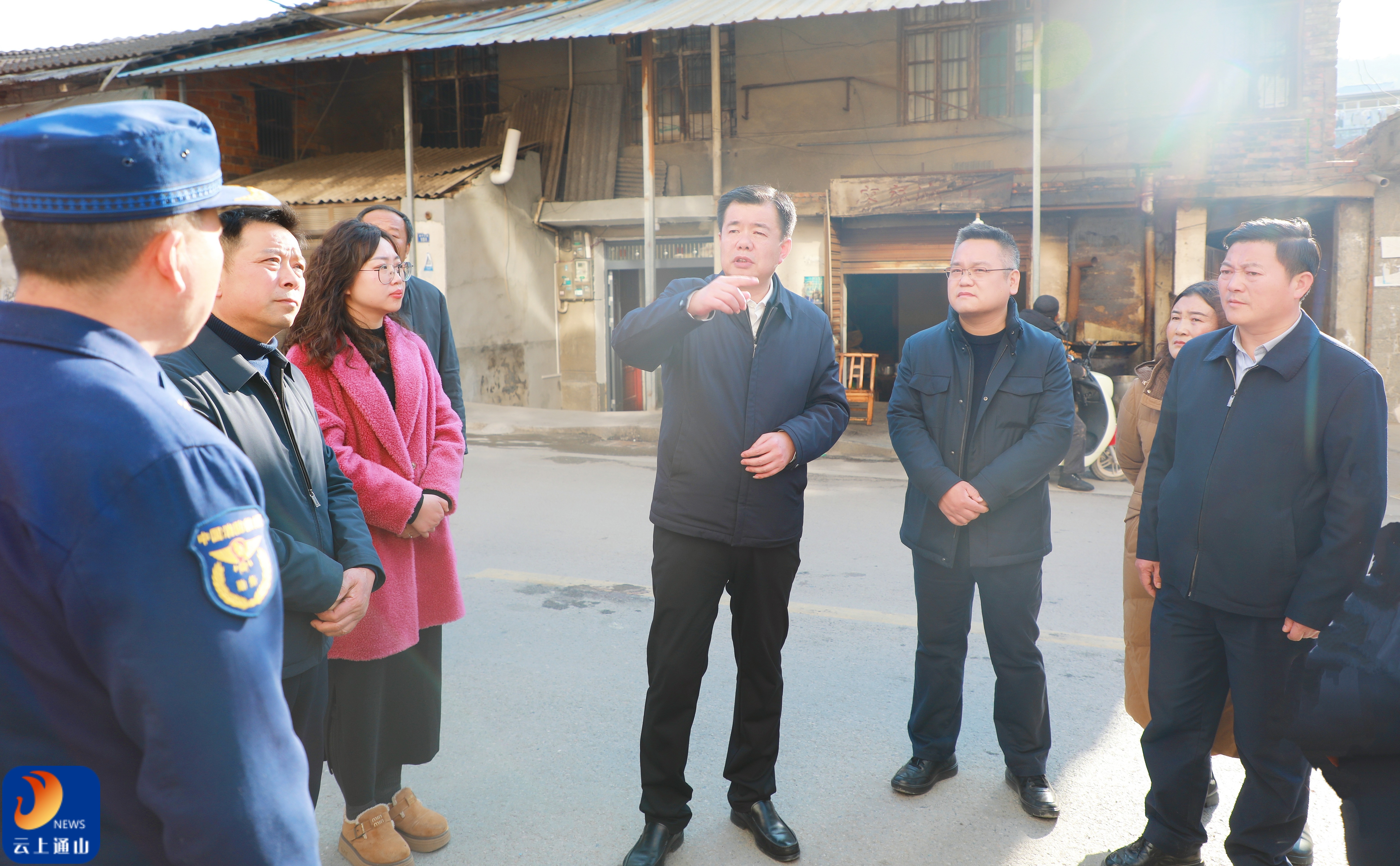 ▲吴涛一行沿街巷细致察看环境整治、基础设施完善及安全隐患排查情况。