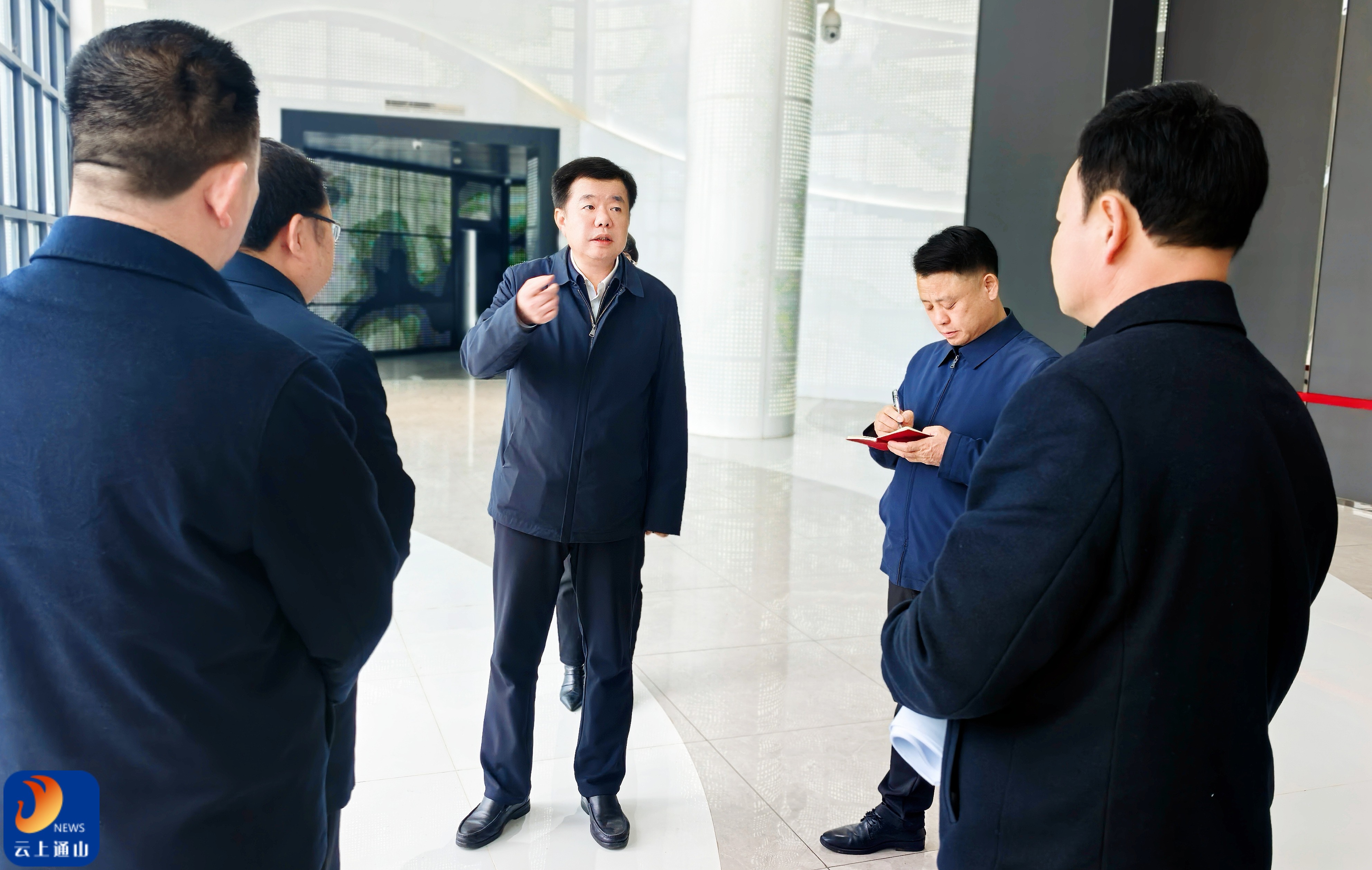 ▲吴涛详细了解园区整体规划、产业布局、基础设施配套以及入园企业生产经营状况。