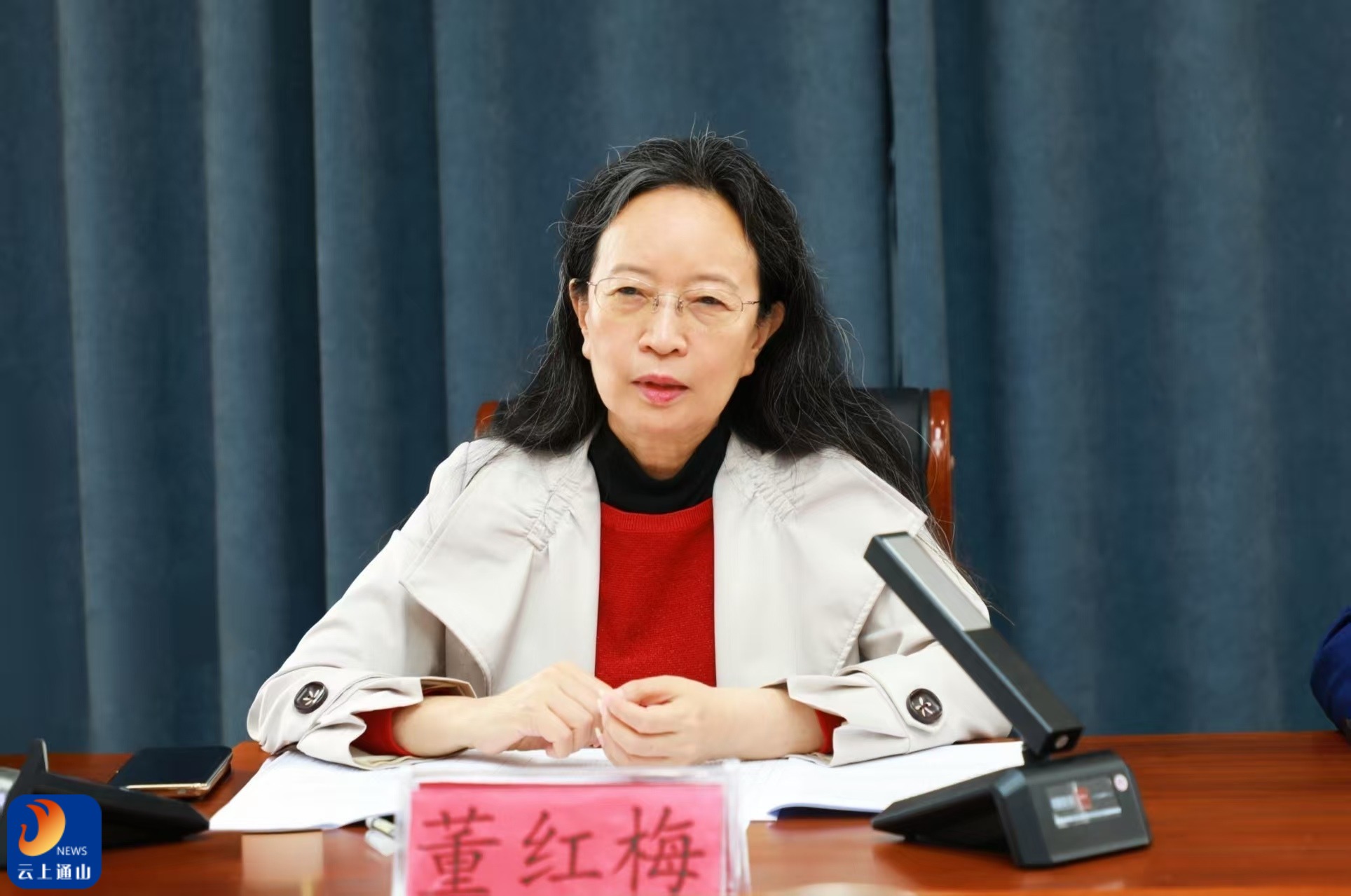 ▲董红梅出席革命老区振兴发展情况座谈会并讲话。
