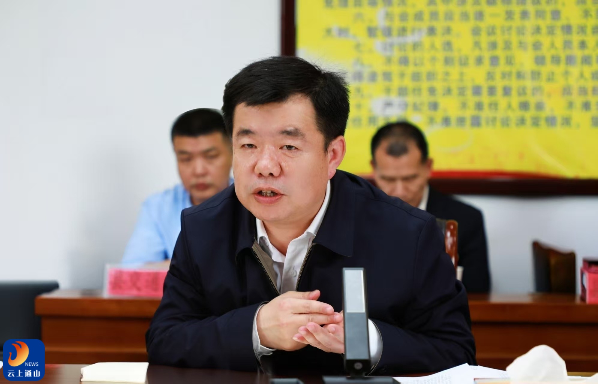 ▲王功辉汇报通山县经济社会发展、城乡建设、传统村落保护等工作情况。