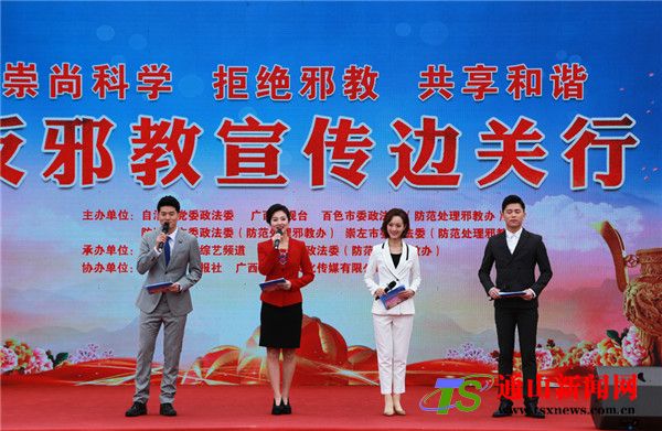 为庆祝改革开放四十周年、广西壮族自治区成立六十周年,进一步认清邪教组织的本质与危害,增强群众反邪教的意识,提高群众抵御邪教侵蚀的能力,弘扬科学精神,营造一个文明和谐的社会环境,11月17日上午,由广西壮族自治区党委政法委、广西电视台、百色市委政法委、防城港市委政法委、崇左市委政法委主办,广西电视台综艺频道、靖西市委政法委承办,广西法治日报社、广西老龙王文化传媒有限公司协办的“反邪教宣传边关行”大型演出活动在百色靖西市休闲广场拉开序幕。