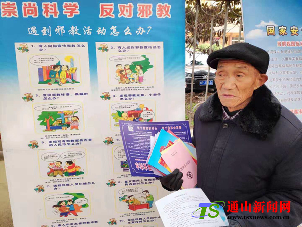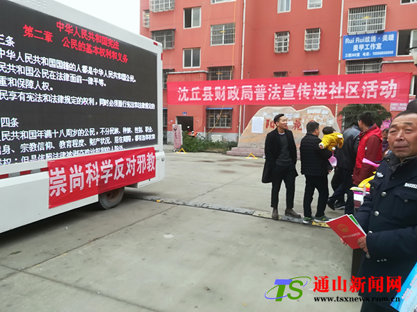 沈丘县在县城法治广场、阳光花园等地全方位开展反邪教宣传。活动现场,悬挂条幅、布置展板、设置法律咨询台、反邪教咨询台,免费向群众发放《中华人民共和国宪法》、《反邪教知识读本》、《小无邪反邪教》及彩页、单页。此次活动,共向过路群众和社区居民发放反邪教宣传小册子1000余份,各类反邪教宣传品1500余份,受教育群众2000余人。