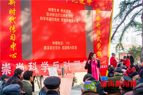 2018年11月,安徽省淮北市濉溪县开展“扫黑除恶扬正气,反对邪教促和谐”为主题的防邪宣传月活动,濉溪县各镇各成员单位分别以组织反邪教志愿者上街宣传、组织群众演员进村进社区宣传、夕阳红艺术团反邪教巡演、反邪教宣传进宗教场所等方式在全县范围内全面展开。