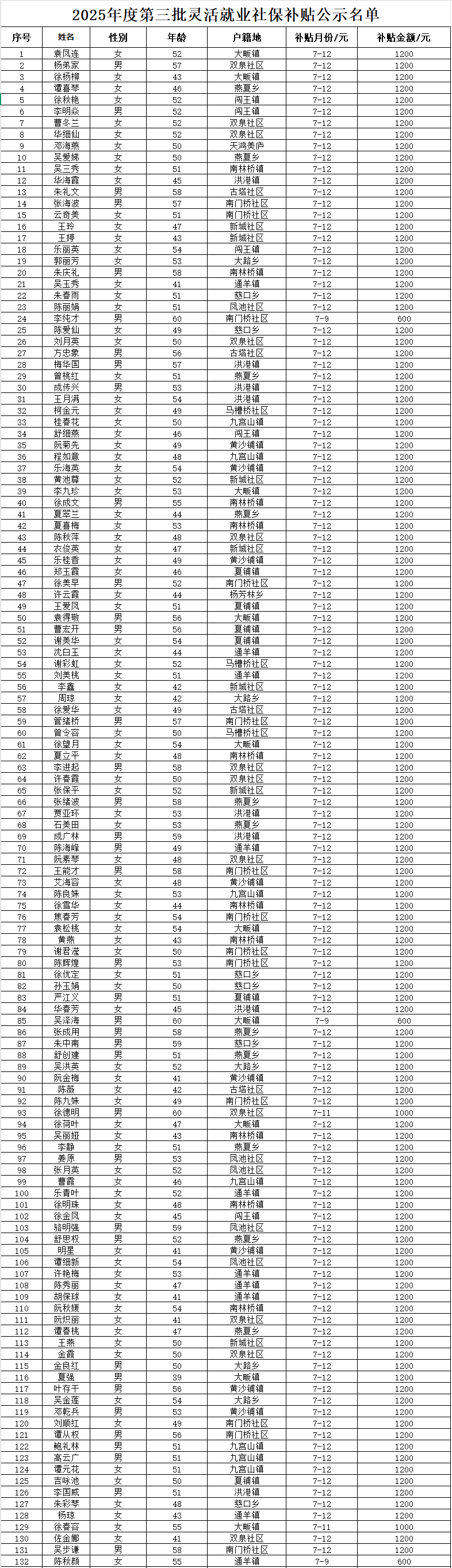 根据《湖北省就业补助资金管理办法》(鄂财社发〔2024〕88号)的规定,现将2025年度第三批灵活就业社保补贴名单予以公示,公示期7天(2025年12月4日——12月11日)