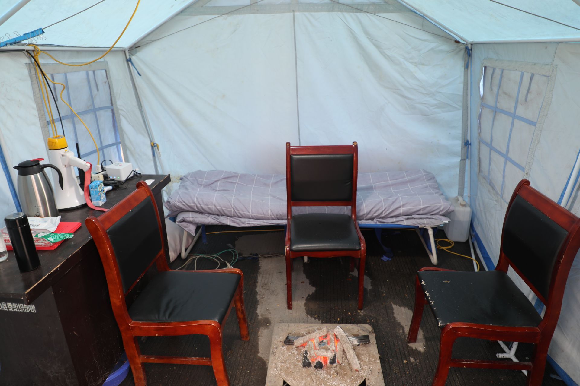 在进行信息核验后,徐良回到临时搭建的帐篷里休息。一张行军床、一个炉子、几张桌椅,就是这里的全部陈设。“没事儿,挺挺就过去了。” 徐良搓了搓冻得通红的手说道。“除了我们民警,还有县有关单位的工作人员来帮忙,减轻了我们的工作负担。”