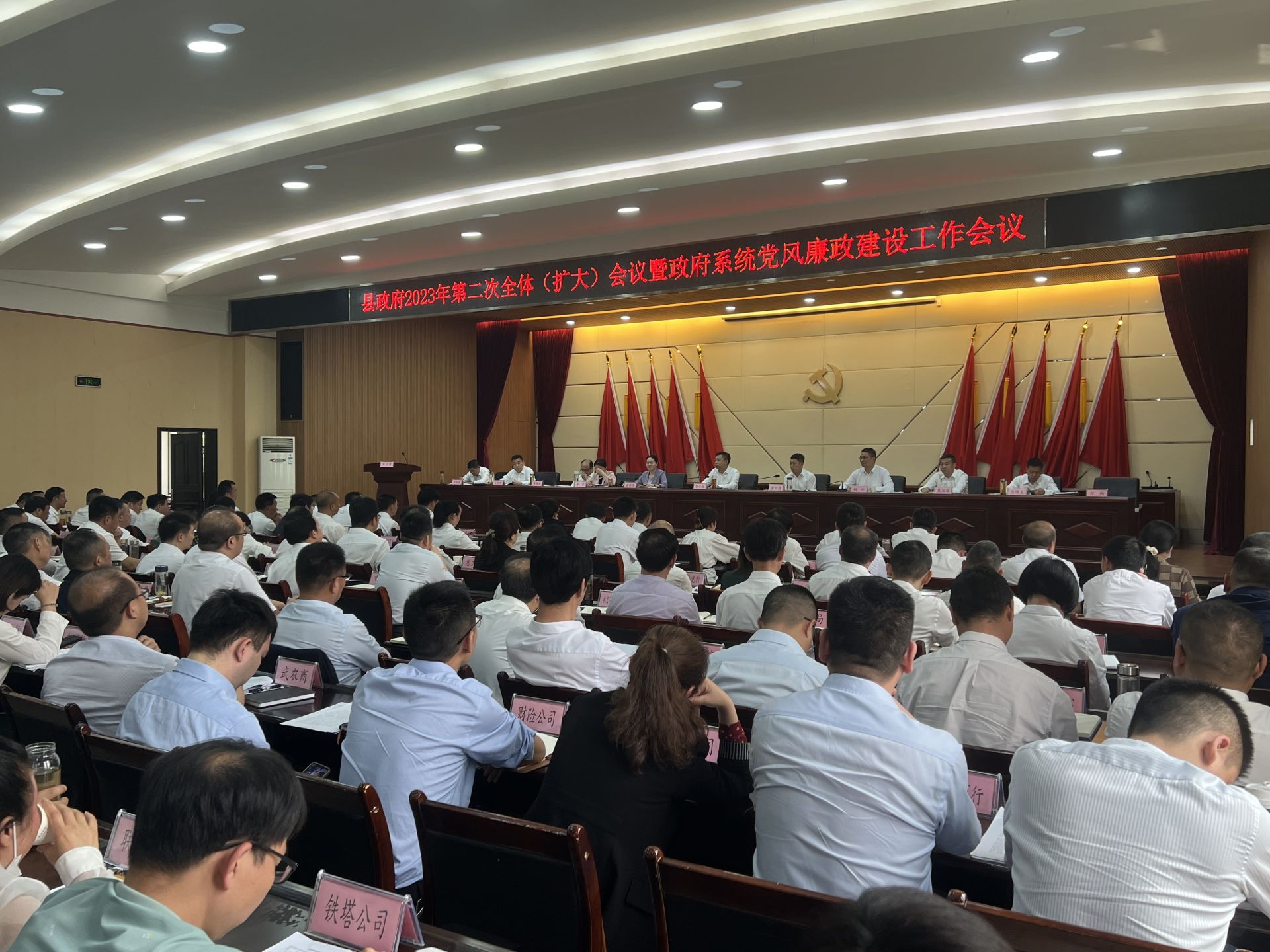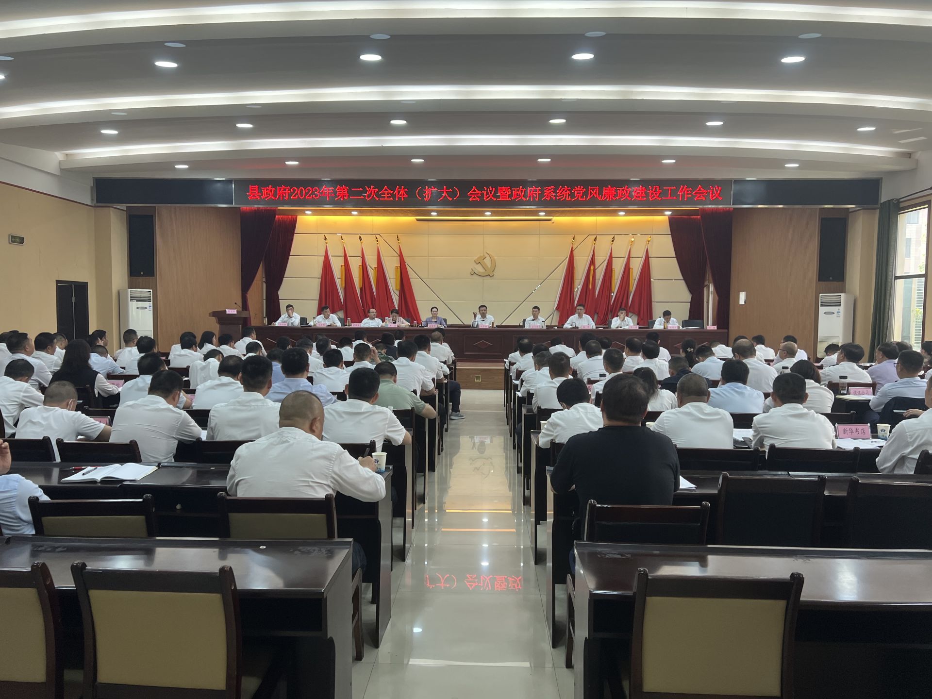 本网讯(全媒体记者 伍文俊)根据县委工作安排,4月20日,县政府召开2023年第二次全体(扩大)会议暨政府系统党风廉政建设工作会议,深入学习贯彻习近平新时代中国特色社会主义思想,贯彻落实党的二十大精神和全国两会精神,安排县域经济高质量发展、优化营商环境和政府系统党风廉政建设、法治政府建设工作。县委副书记、县长刘子恒出席会议并讲话。县委常委、常务副县长金大德主持会议;县委常委、副县长徐丽华通报了元至3月份督查件办理情况;县委常委、纪委书记、监委主任杨奇应邀出席会议,指导政府系统党风廉政建设工作。县领导李莹、焦汉雄、董继兵、陈绵主、王定明、刘畅、金汉南参加会议。