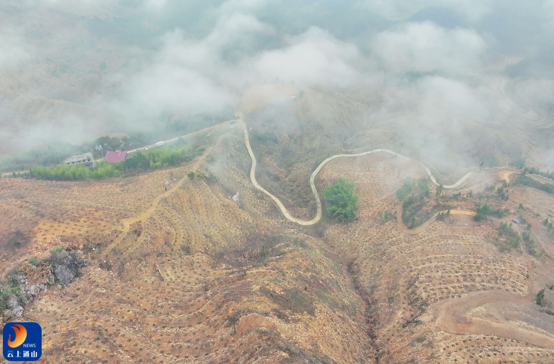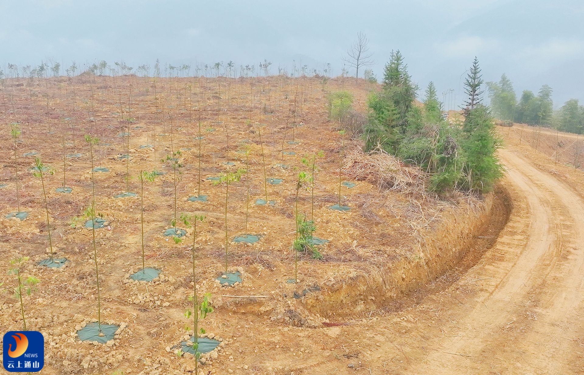 ▲九宫山镇程许村石峰尖荒山绿化现场。