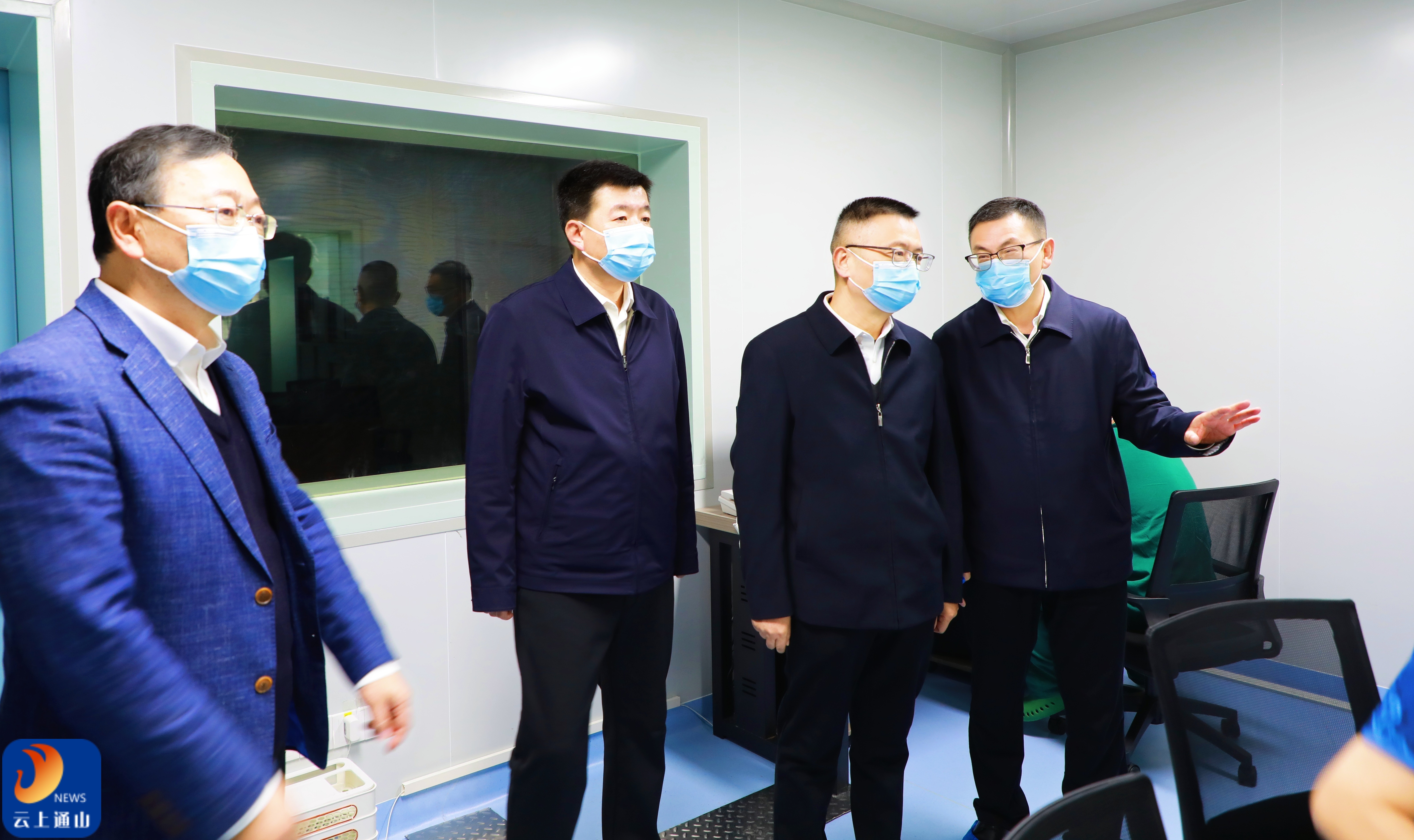 ▲李岱、吴涛等领导深入县医院放疗中心、介入诊疗中心等地开展实地调研。
