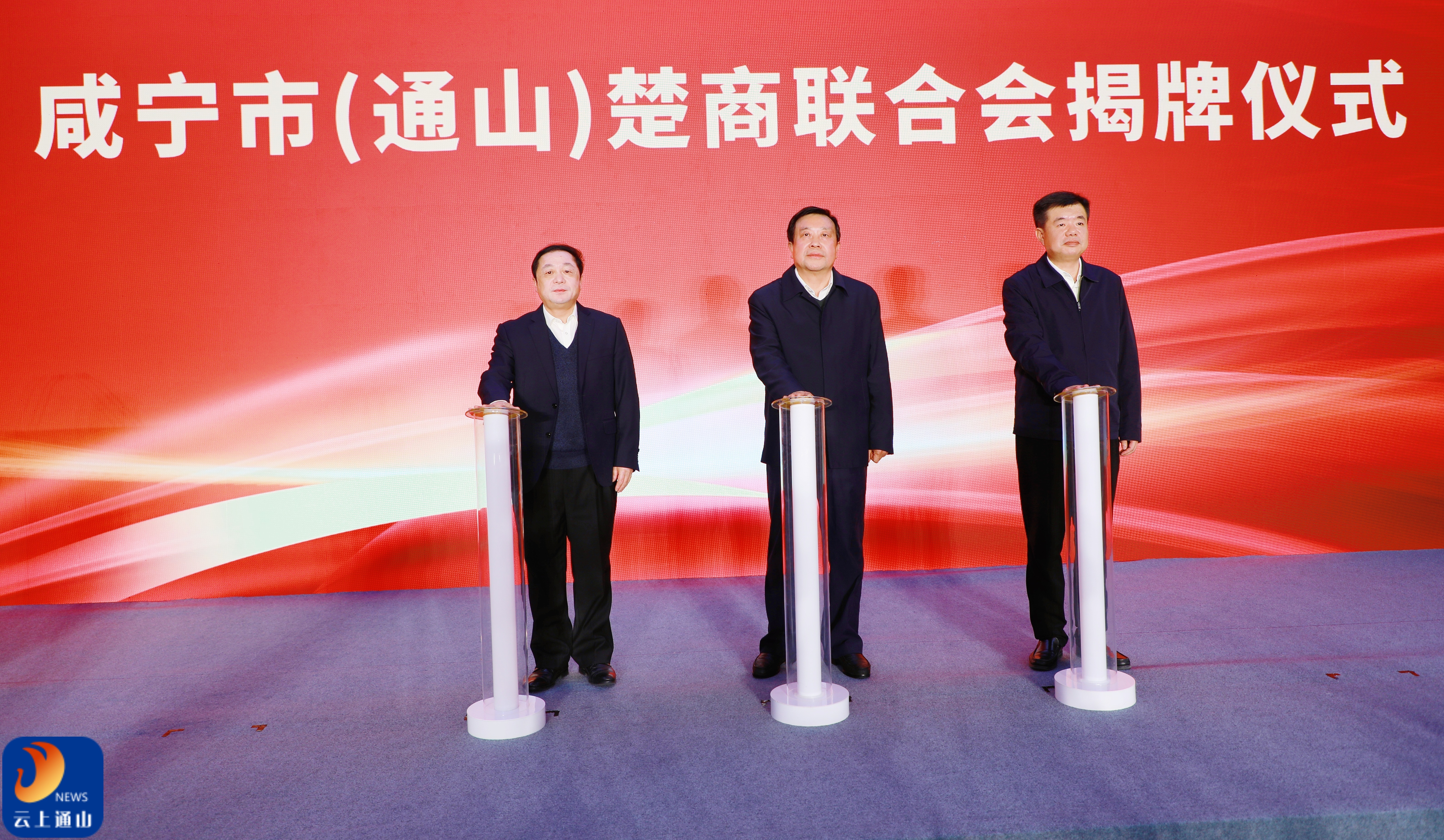 ▲石玉华、吴涛、黄晖共同为咸宁市(通山)楚商联合会揭牌。