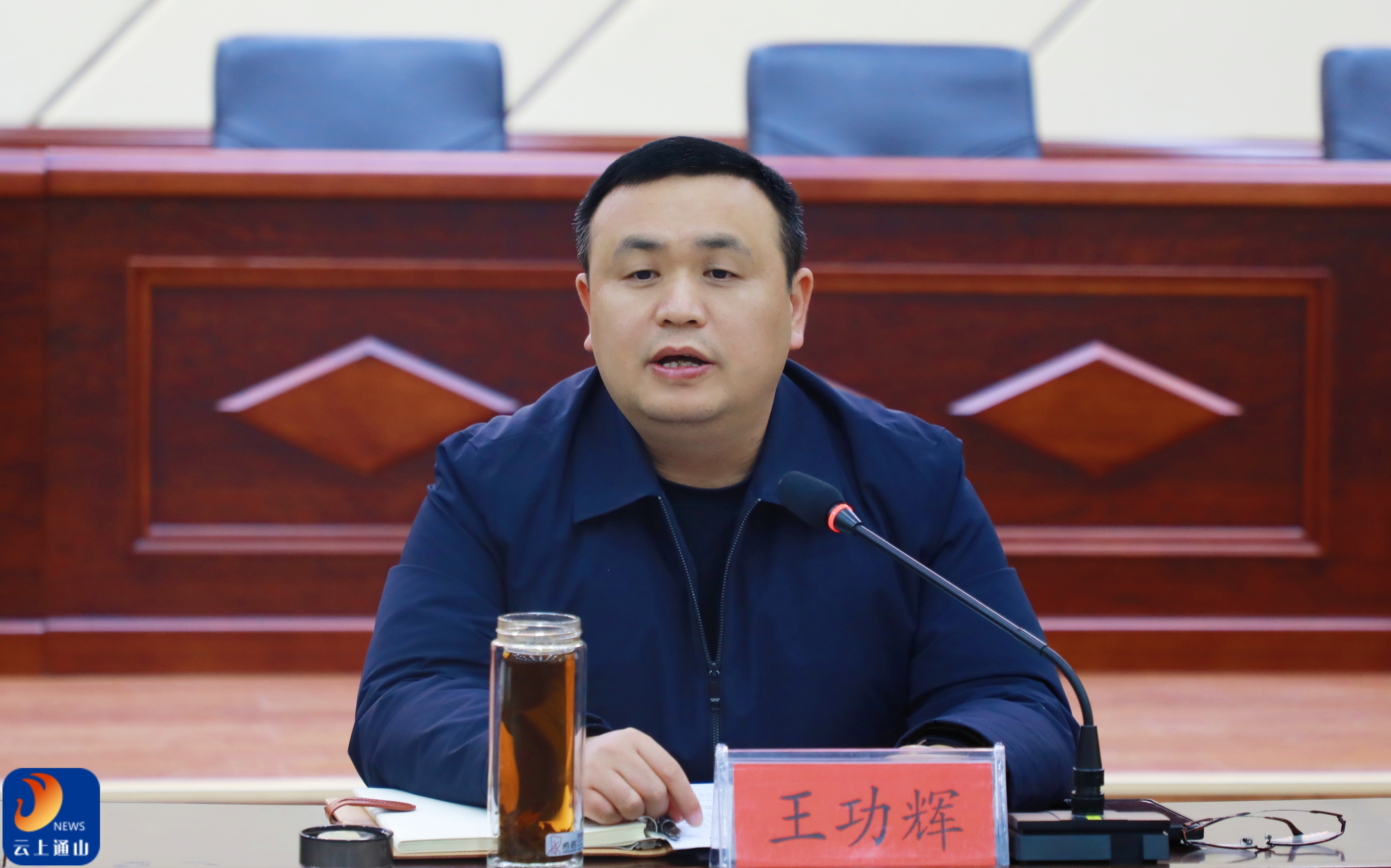 ▲县委副书记、县长王功辉主持会议并讲话。