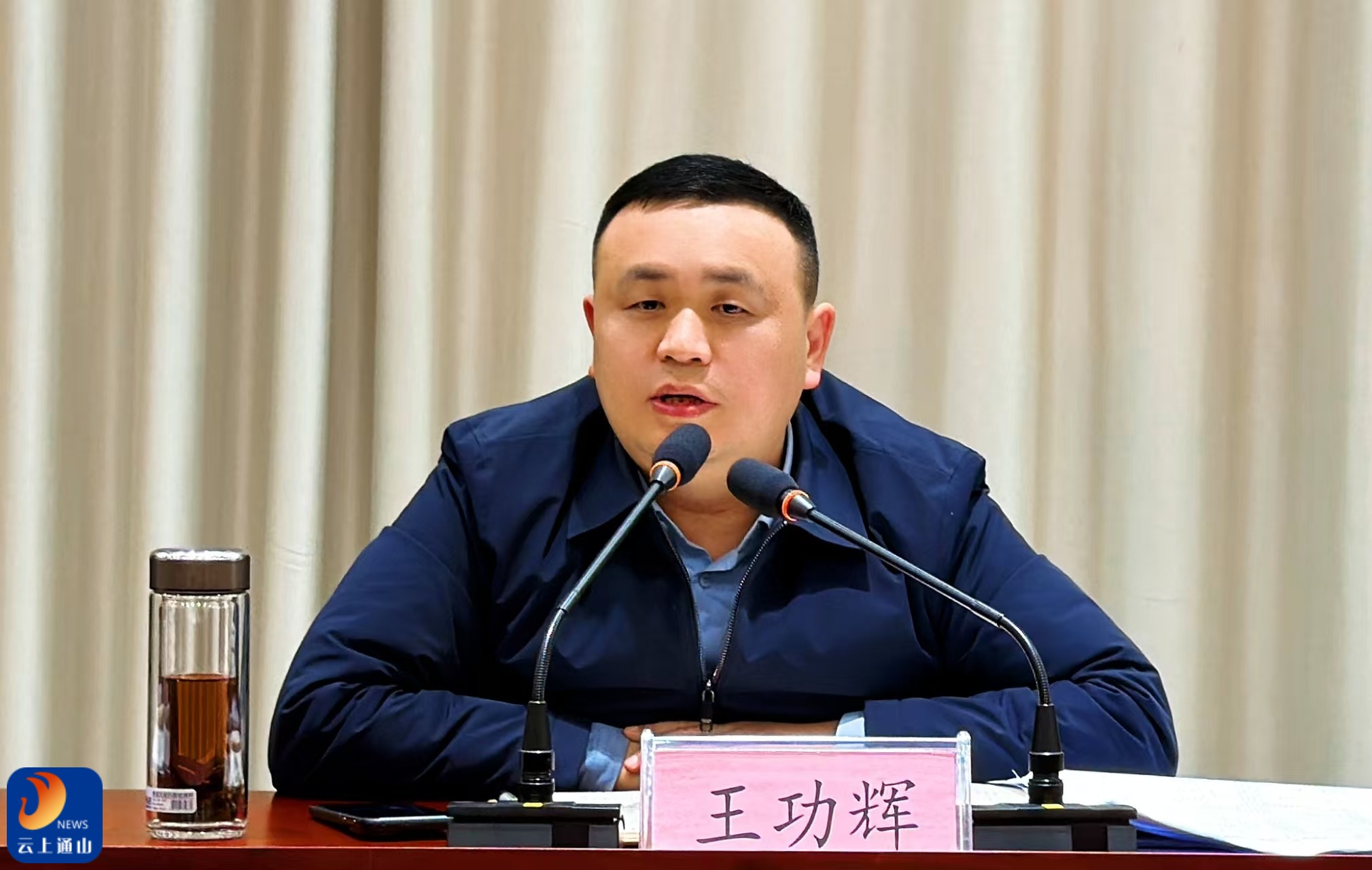 ▲县委副书记、县长王功辉出席会议并讲话。