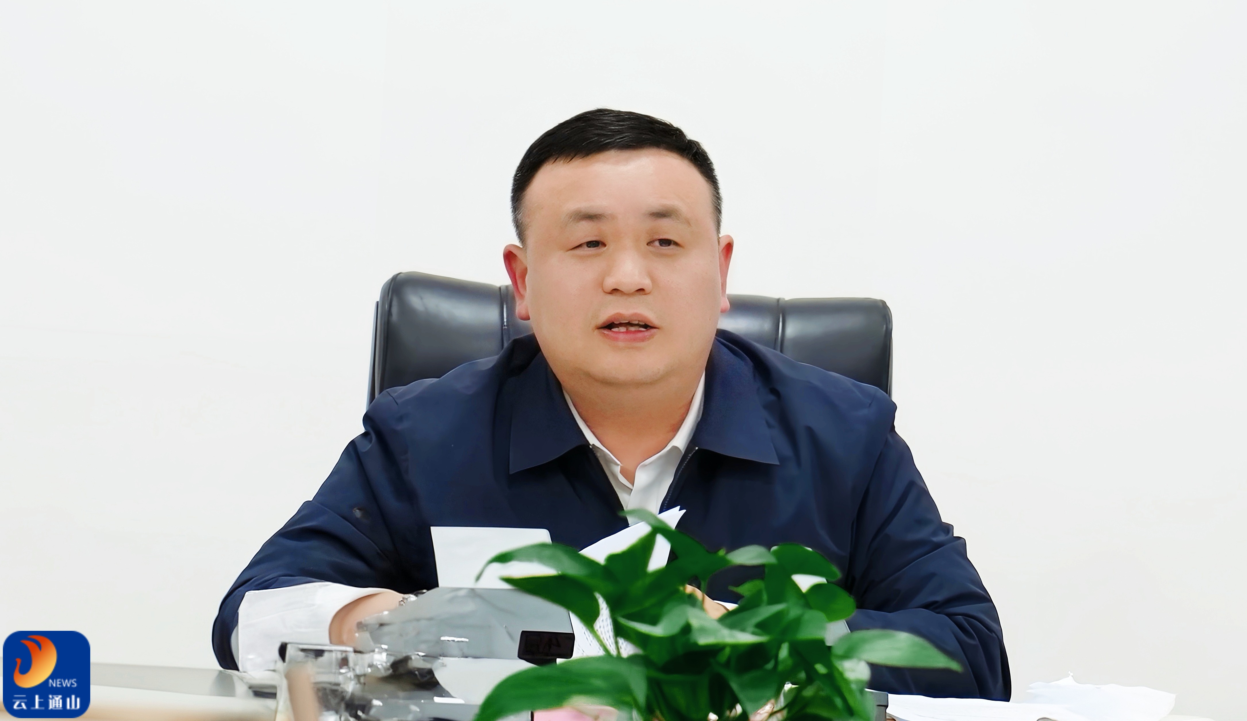 ▲王功辉主持会议并讲话。