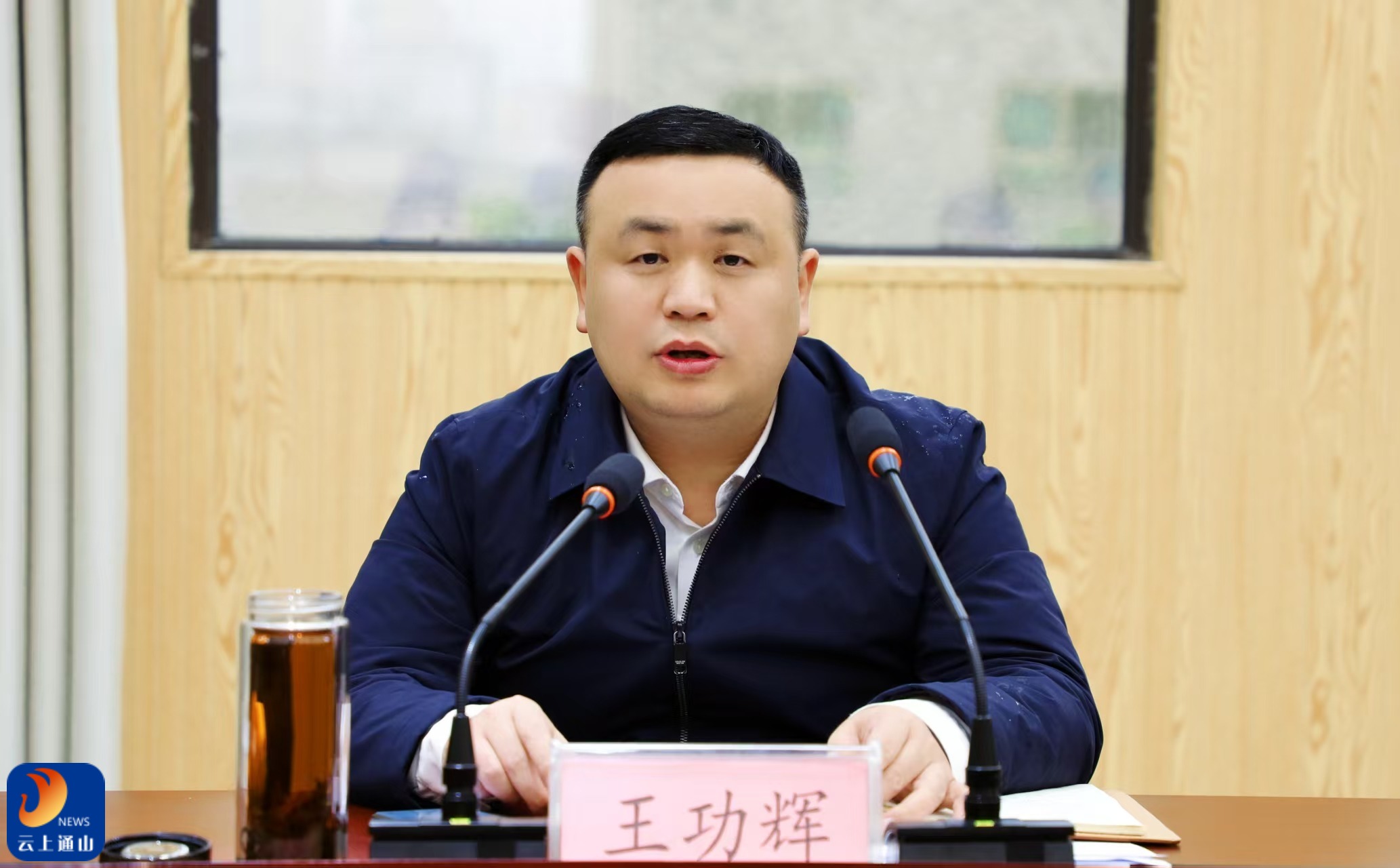▲王功辉主持会议并讲话。