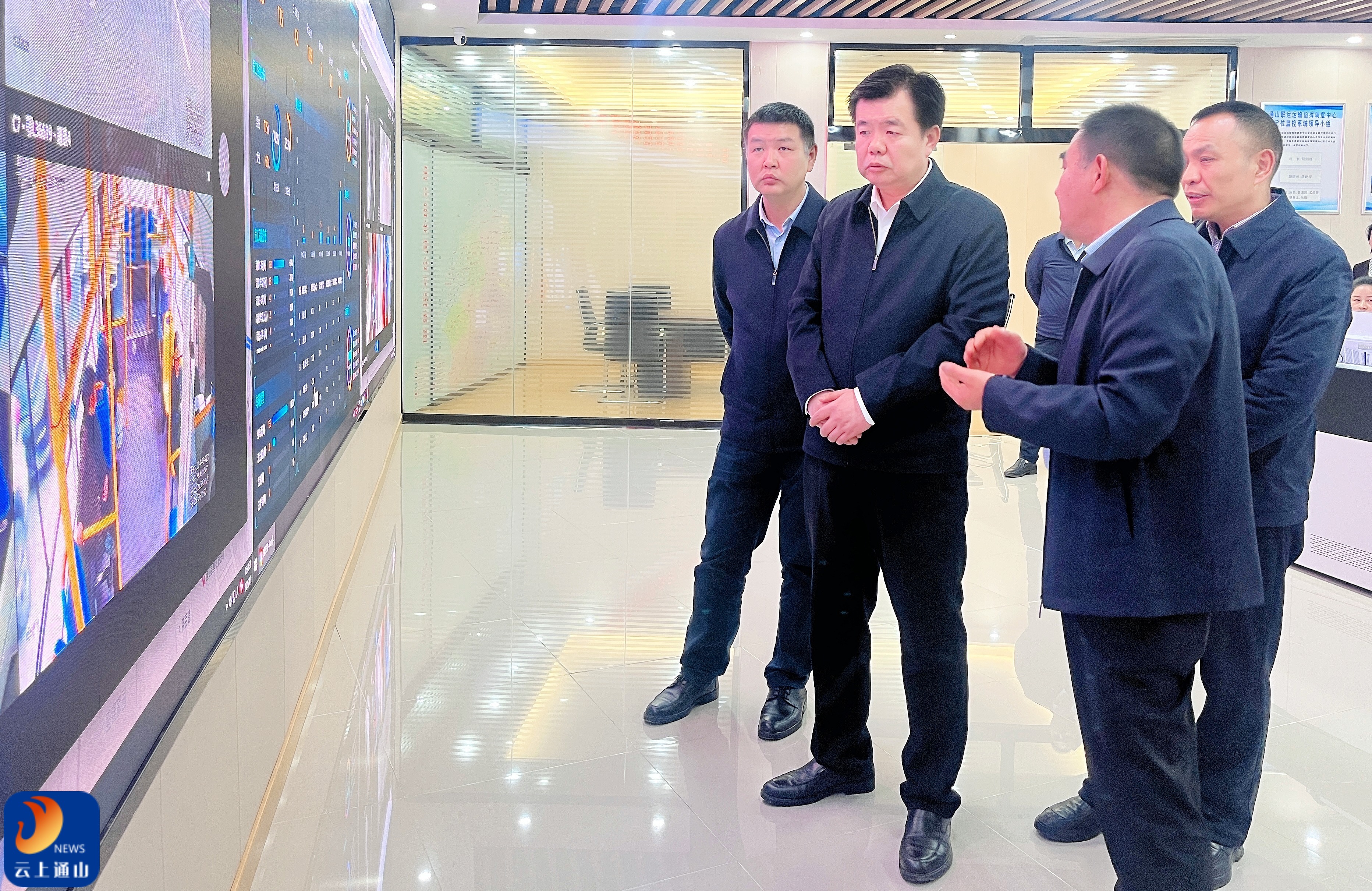 ▲吴涛一行实地查看了客运车辆安全设施、校车运营管理及动态监控系统运行情况。