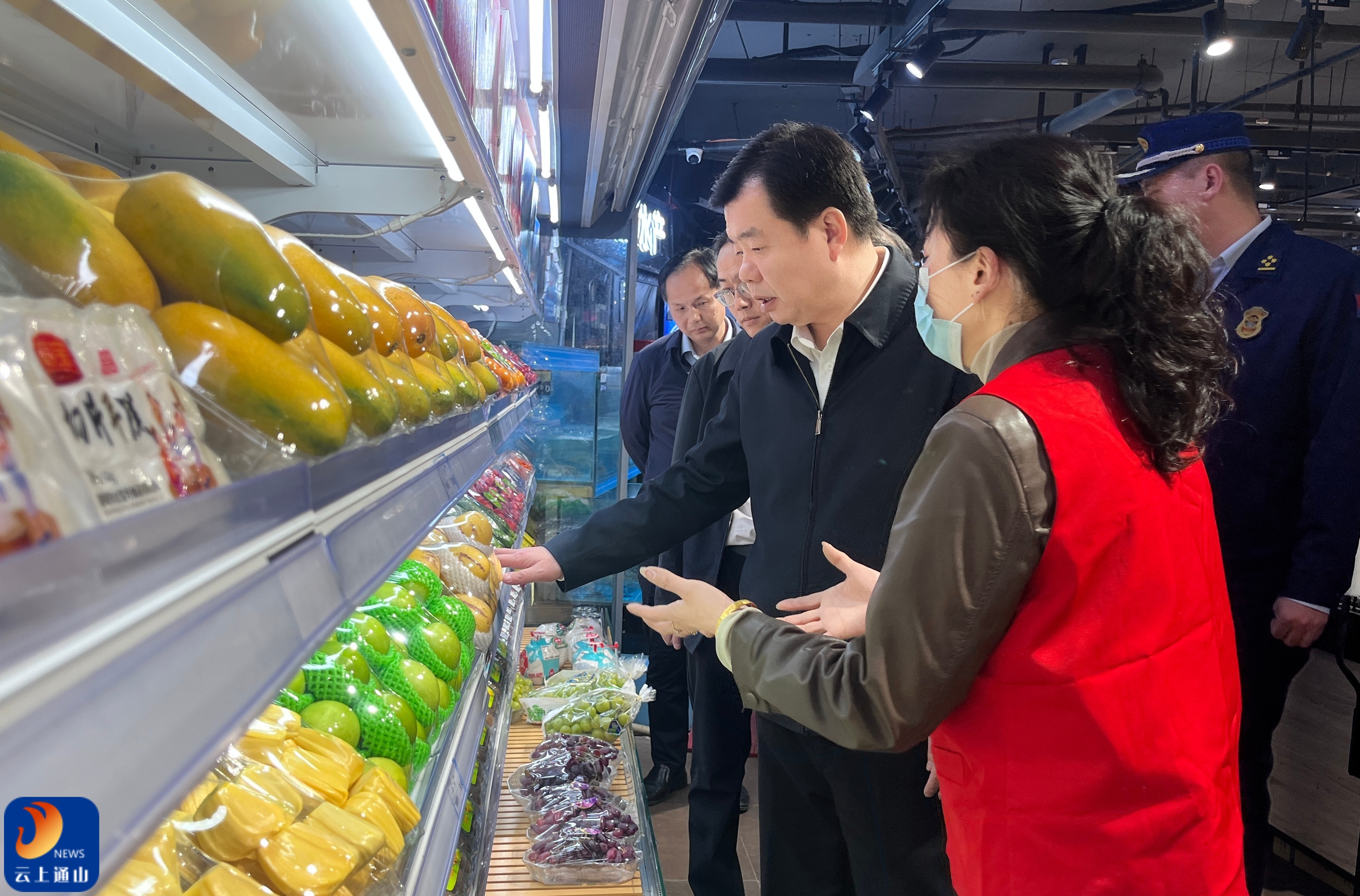 ▲吴涛详细询问了商品供应、消防通道设置及食品安全管理情况。
