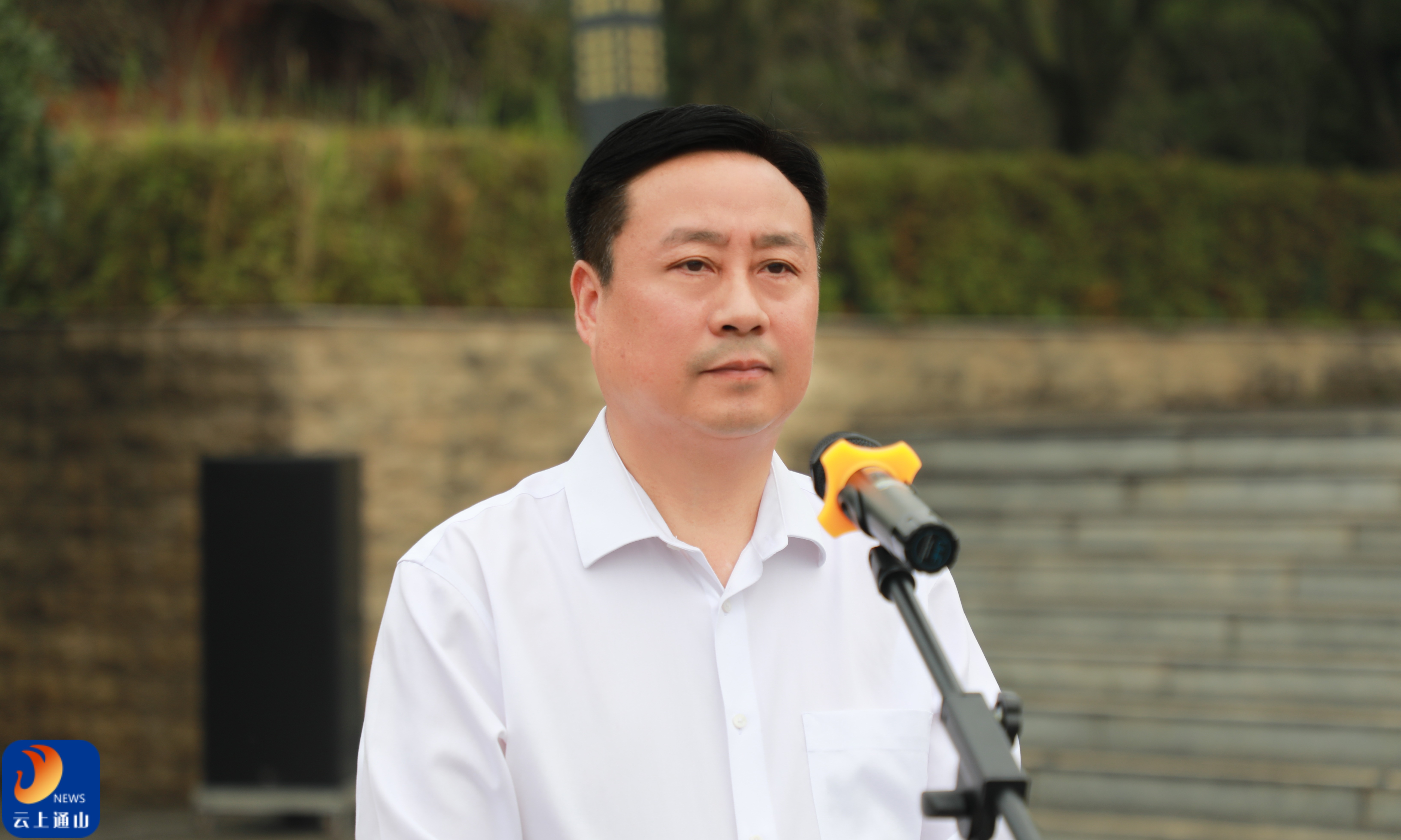 ▲县委副书记廖旦主持烈士纪念日公祭活动。