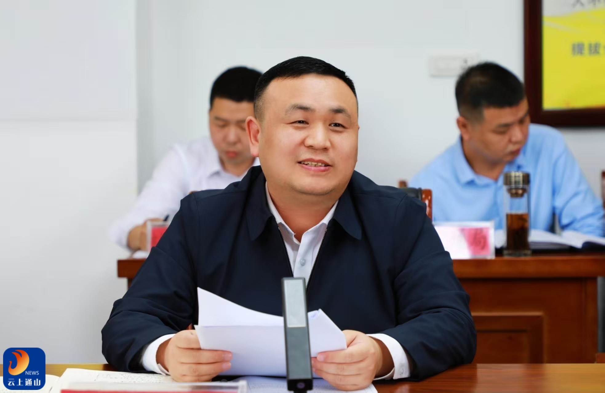 ▲王功辉汇报通山县经济社会发展、城乡建设、传统村落保护等工作情况。