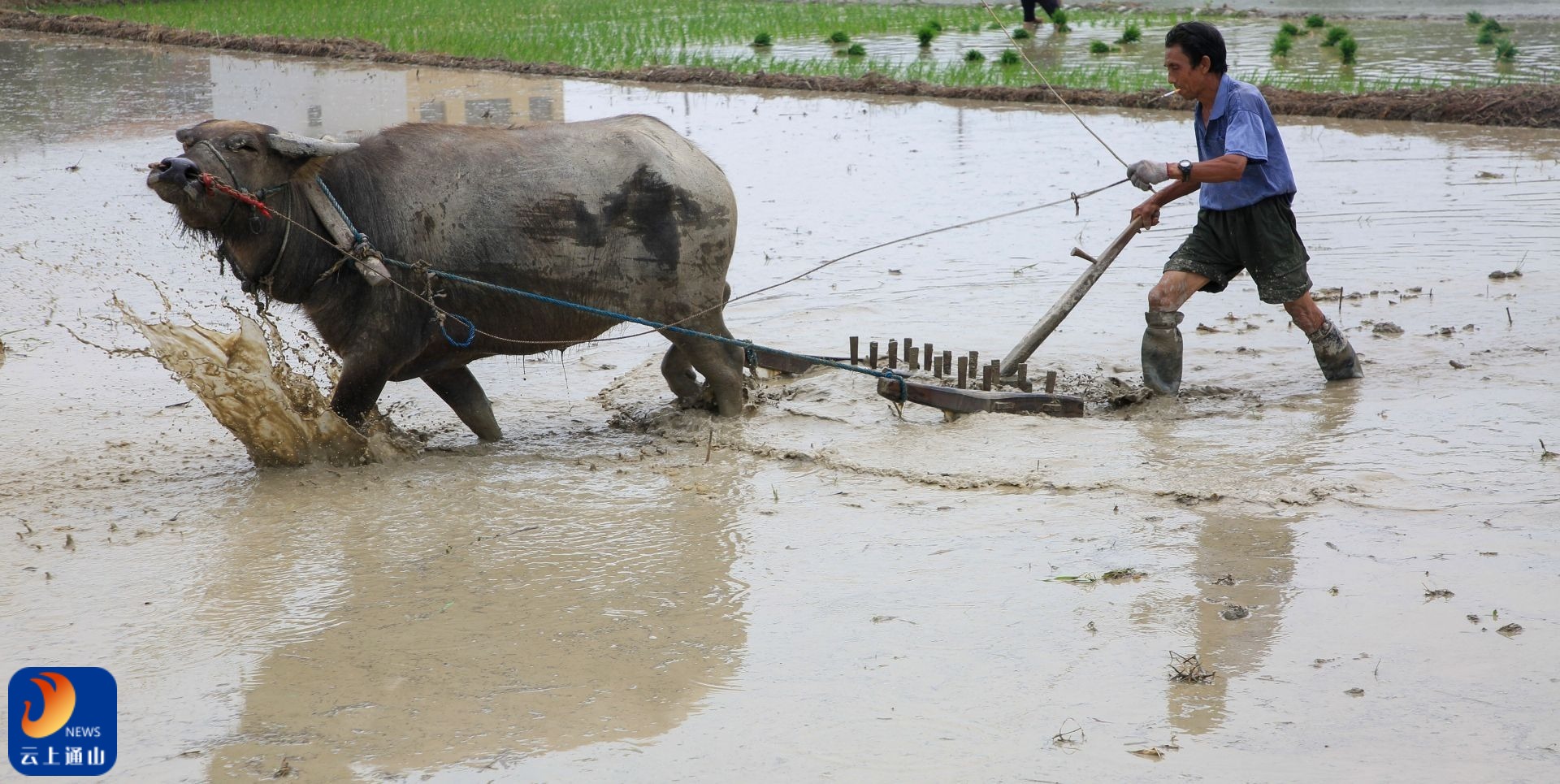 田家少闲月,五月人倍忙。村民们打着赤脚在田地中辛勤劳作,耕田、插秧,各种农具齐上阵,势要抢占农时,以赢得稻田丰收,正应了那一句“人间辛苦是三农,要得一犁水足,望年丰”。