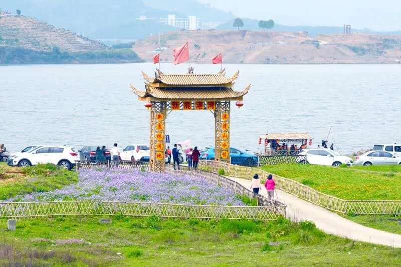 通山县大畈镇鹿眠塘村新鹿港湾,处于富水湖中游,距通山县城20公里。这里有蒙古包、农家柴火灶、还有儿童娱乐园,是踏青、赏花、烧烤、跑步、放风筝等户外活动的好去处。
