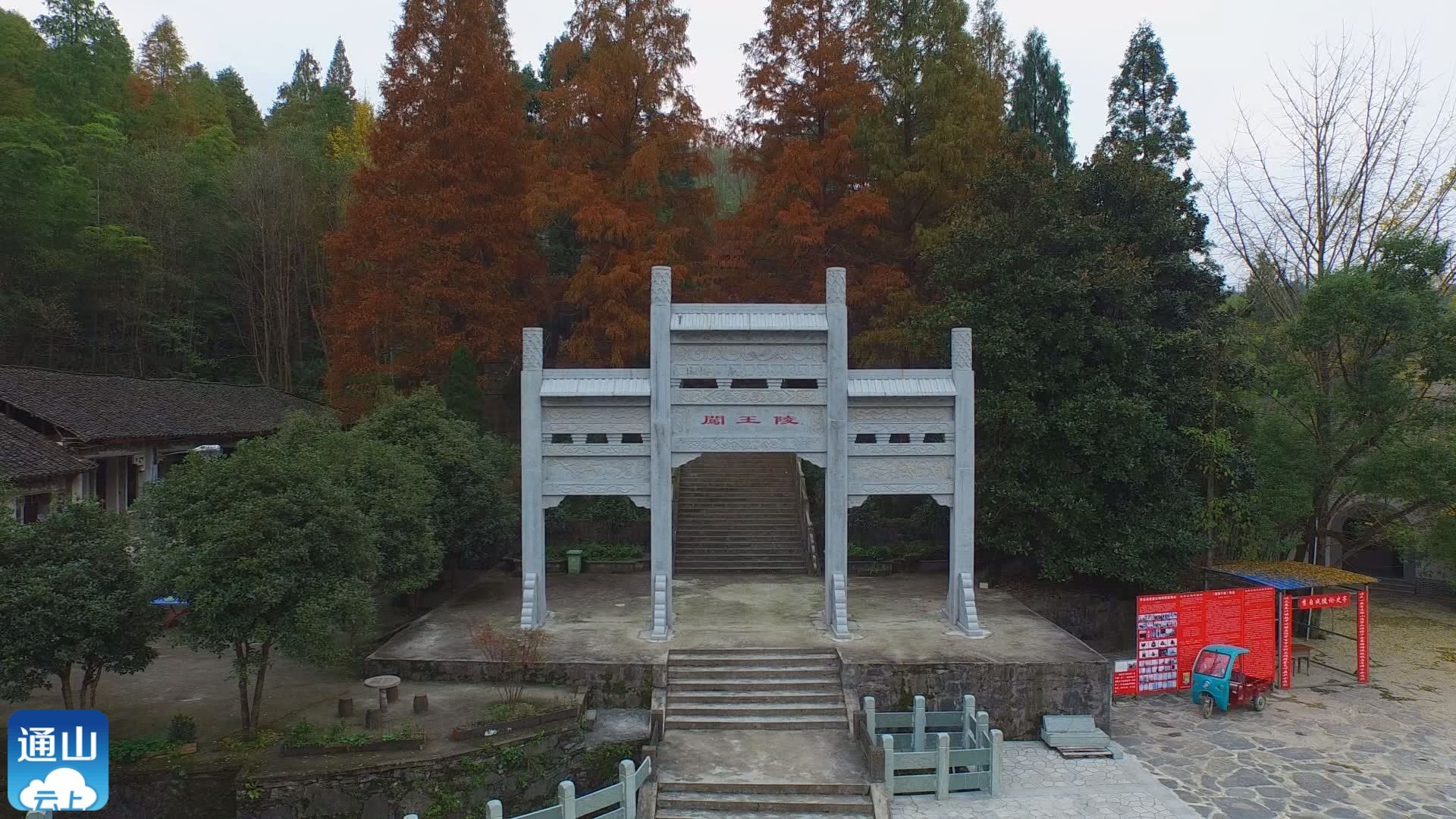 通山县闯王陵景区,位于九宫山西麓牛迹岭的小月山下。陵区占地面积200余亩。是中国唯一农民起义领袖李自成的陵寝。整座陵区由拴马松、激战坡、门楼、墓冢、陈列室等组成,建筑依山就势,肃穆雄伟,占地面积200余亩。