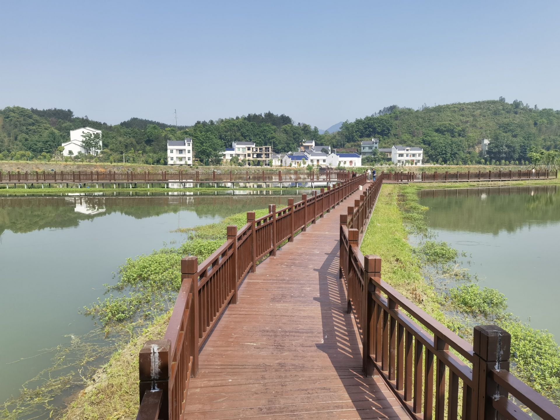 漫步在新修的进村公路中,树、石、路、池、廊,一步一景错落有致,雪白的墙、青色的瓦、古朴的门窗,一条条石板小路通向一个个院落,漫步在清澈干净的湖面游步道上,幽静又充满诗情画意的院落与周边自然村貌融为一体,让人身心愉悦。