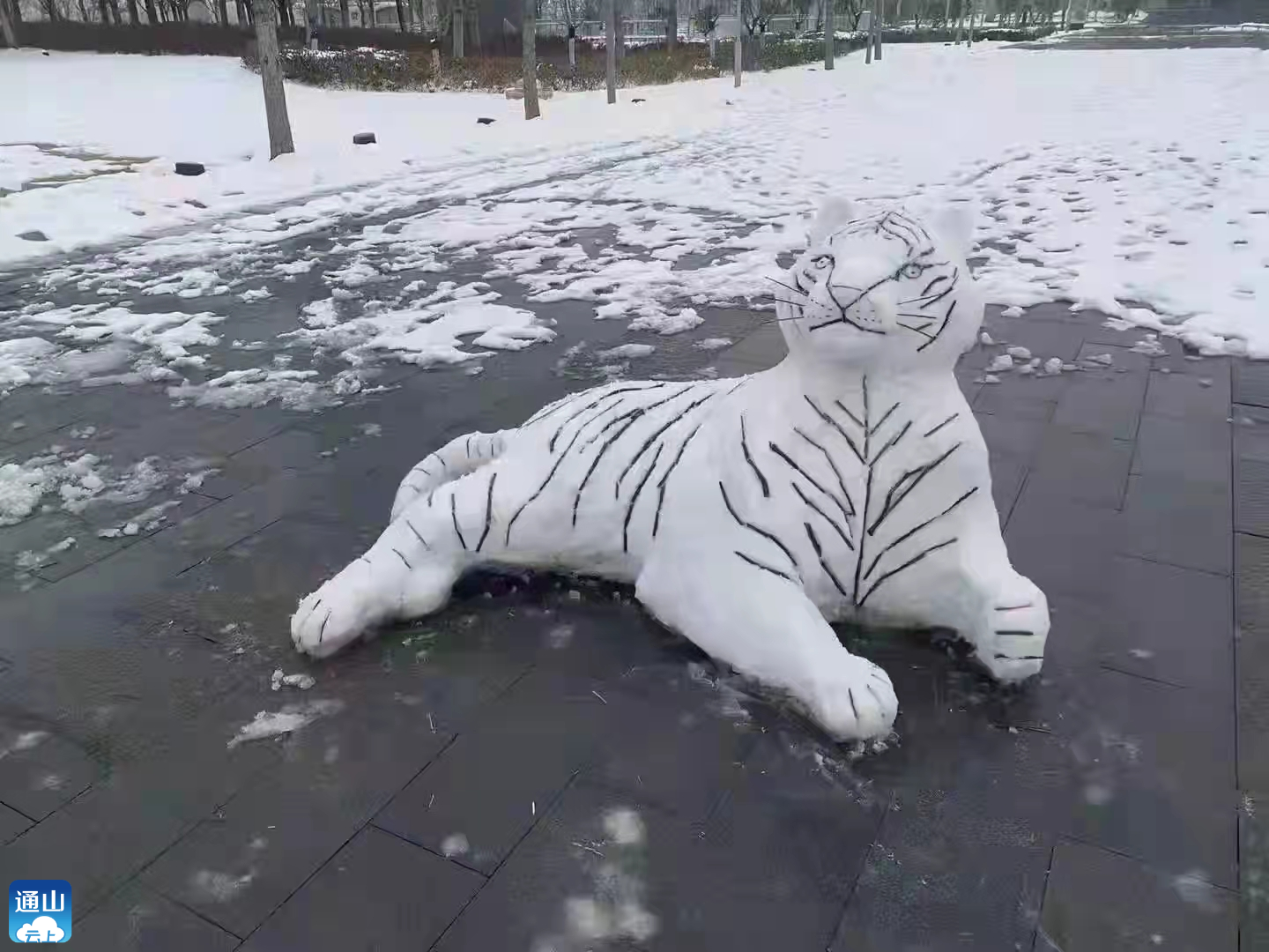 朋友圈此刻也是一片欢乐场。有人发深情的文案,有人发动态的欢声笑语,还有人在这片雪意中转身做了诗人或者行者,就连河边的铜雕塑也成了大家新的“宠物”和激发灵感的精灵!