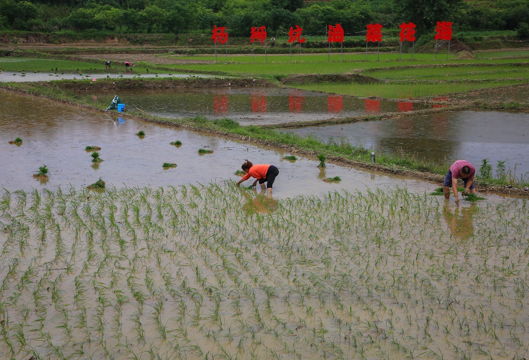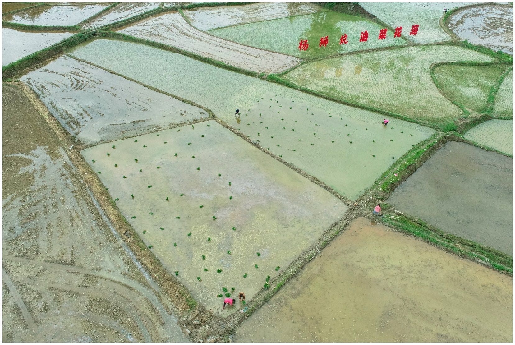 在通山县大路乡杨狮坑村,田间村民们正忙着耙田、施肥、栽秧等,一副生机盎然的图景映入眼帘。转眼间,一块块空荡荡的水田换上了“绿色”新装,如镜的水面、嫩绿的秧苗、漂亮的民居共同勾勒出一幅静好的田园风光画。