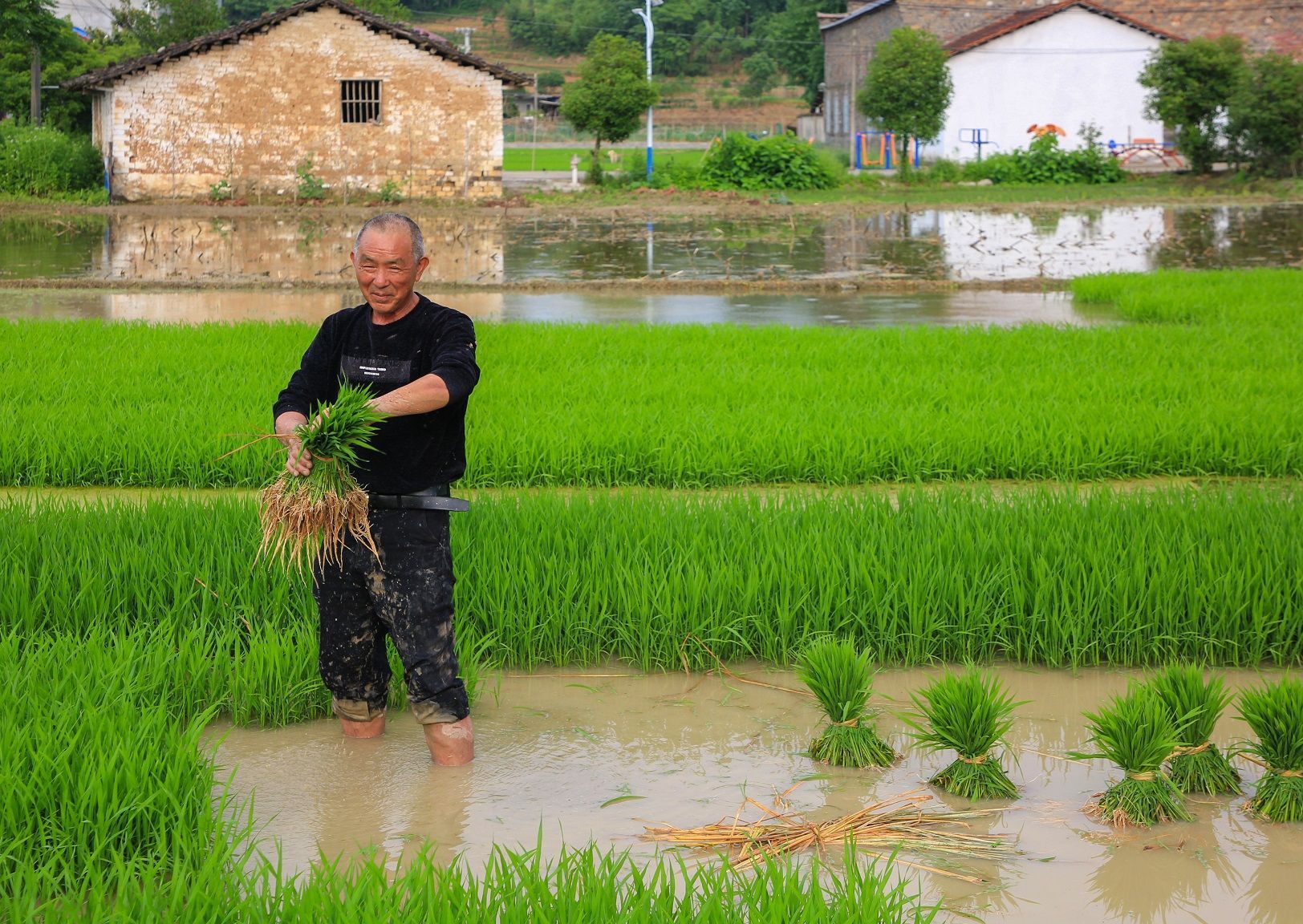 ▲手把青秧插满田,低头便见水中天。