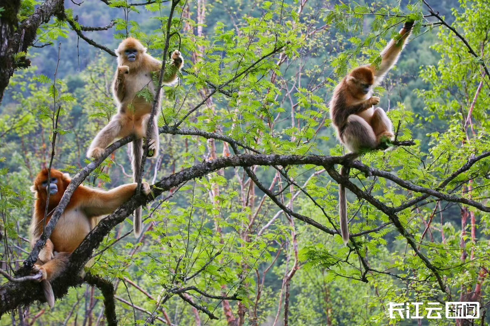 华中屋脊神农架,被誉为北半球中纬度的“绿色奇迹”。在神农架的茂密森林里,金丝猴成群结队地在林间穿梭、啃食枝条,好不自在。