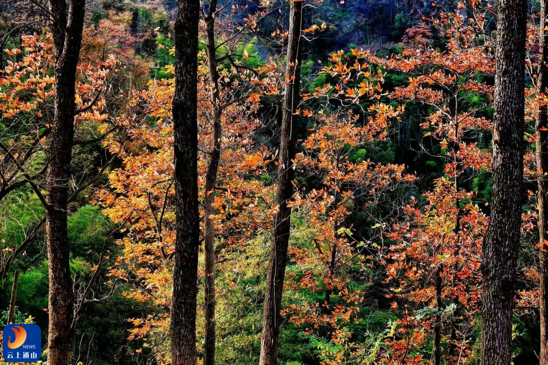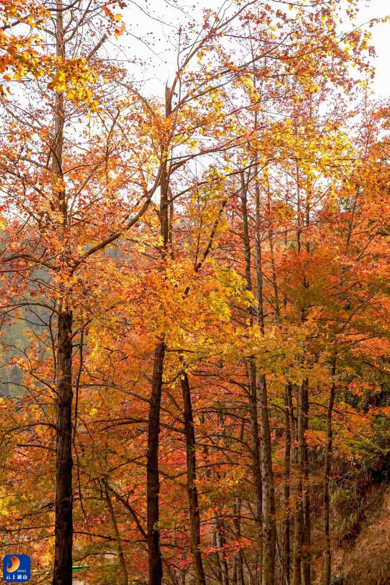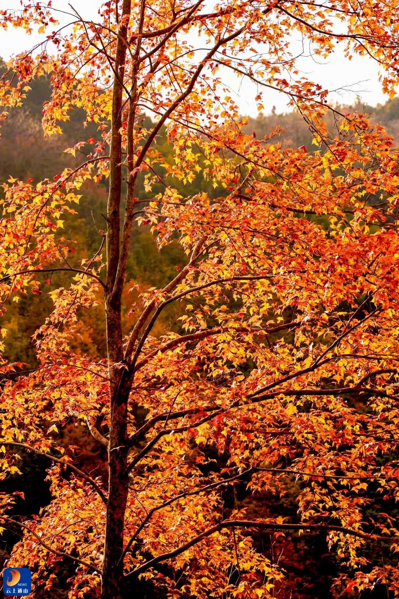 ▲枫香红叶将漫山遍野染成跃动的火焰。