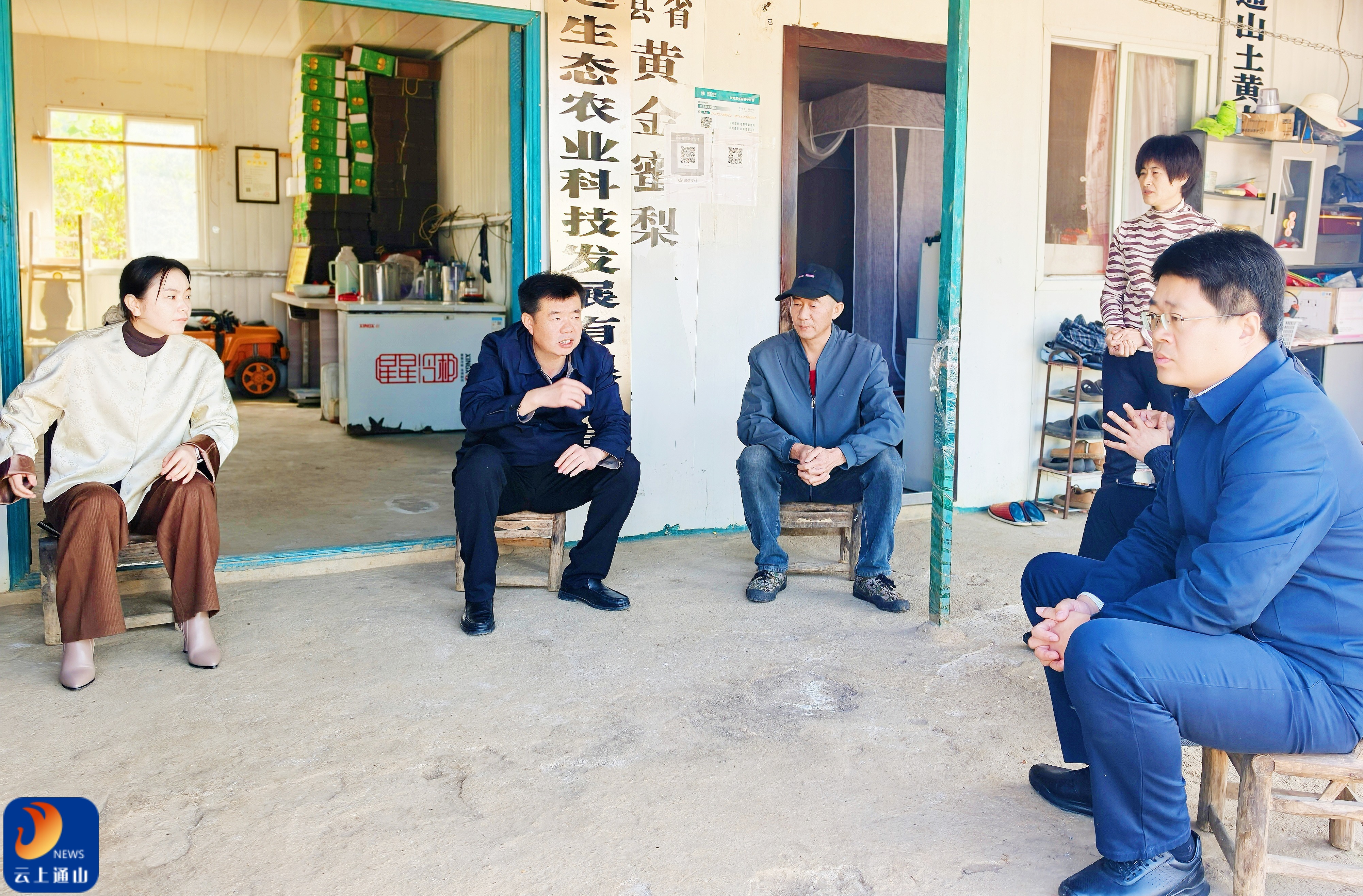 在老屋村梅光运蜜梨基地,吴涛与合作社负责人亲切交谈,详细了解基地的建设规模、种植品种、销售渠道和年度收益,重点询问产业发展中面临的实际困难。