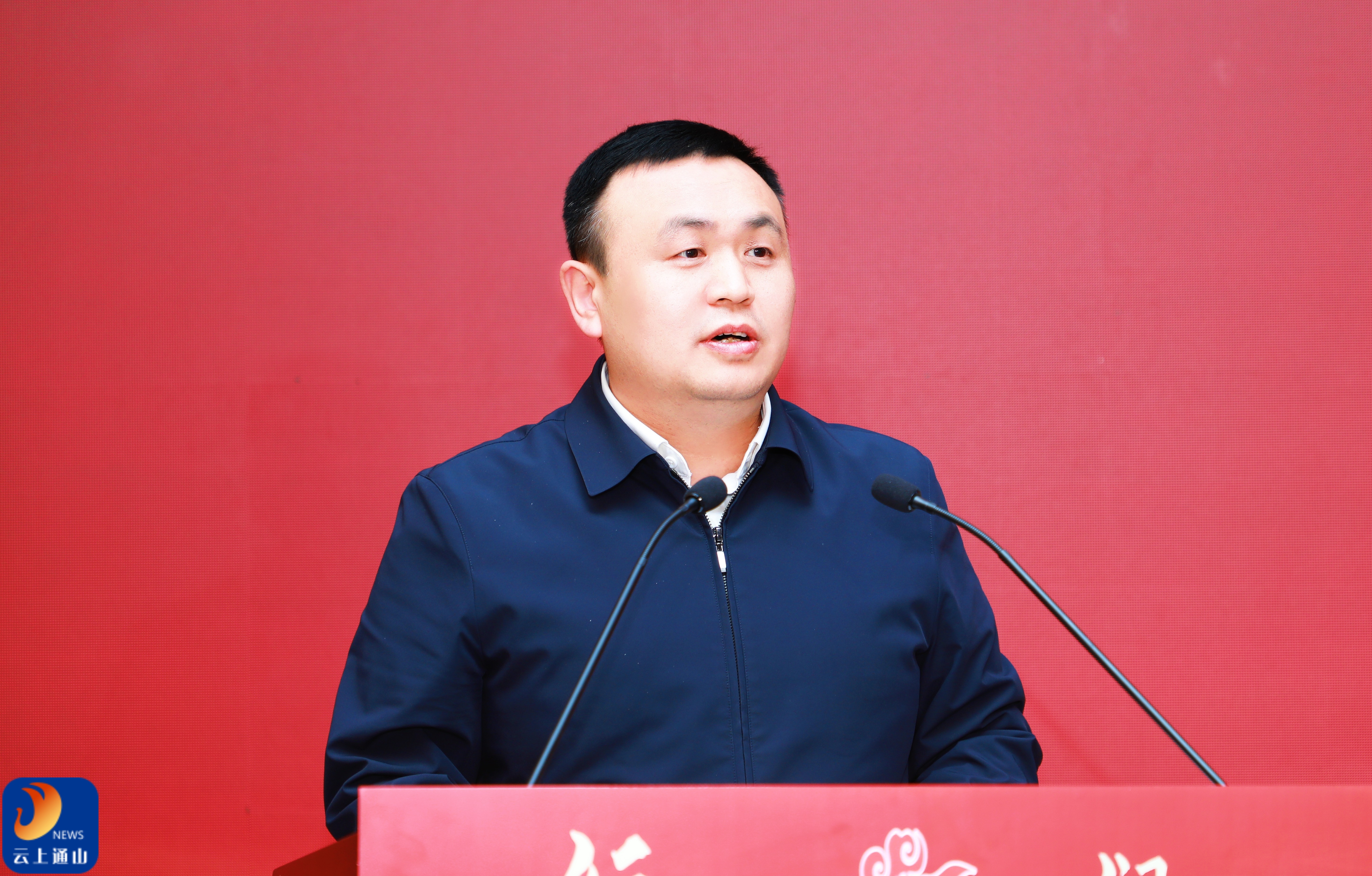 ▲县委副书记、县政府党组书记、县长候选人王功辉主持会议并致辞。