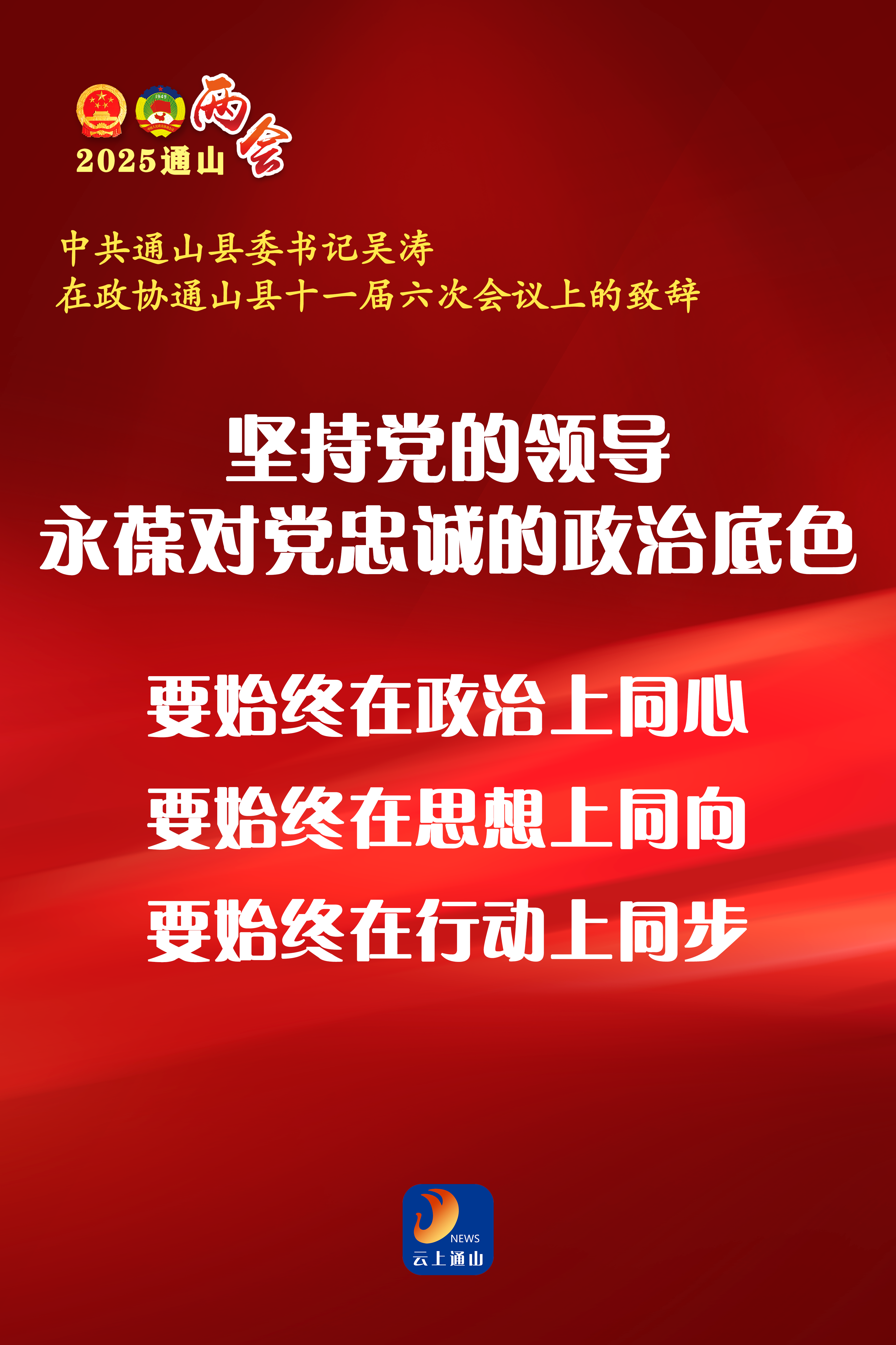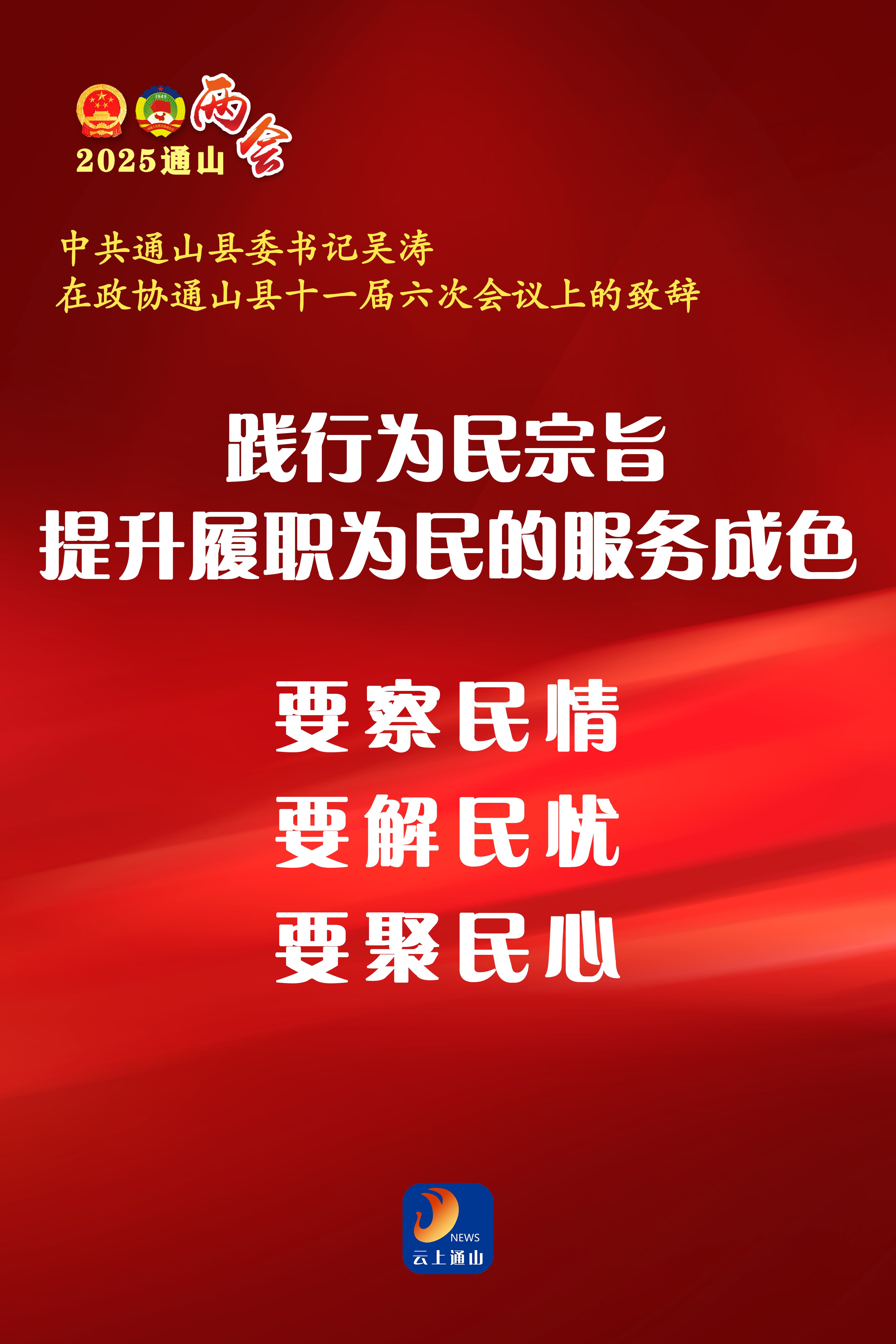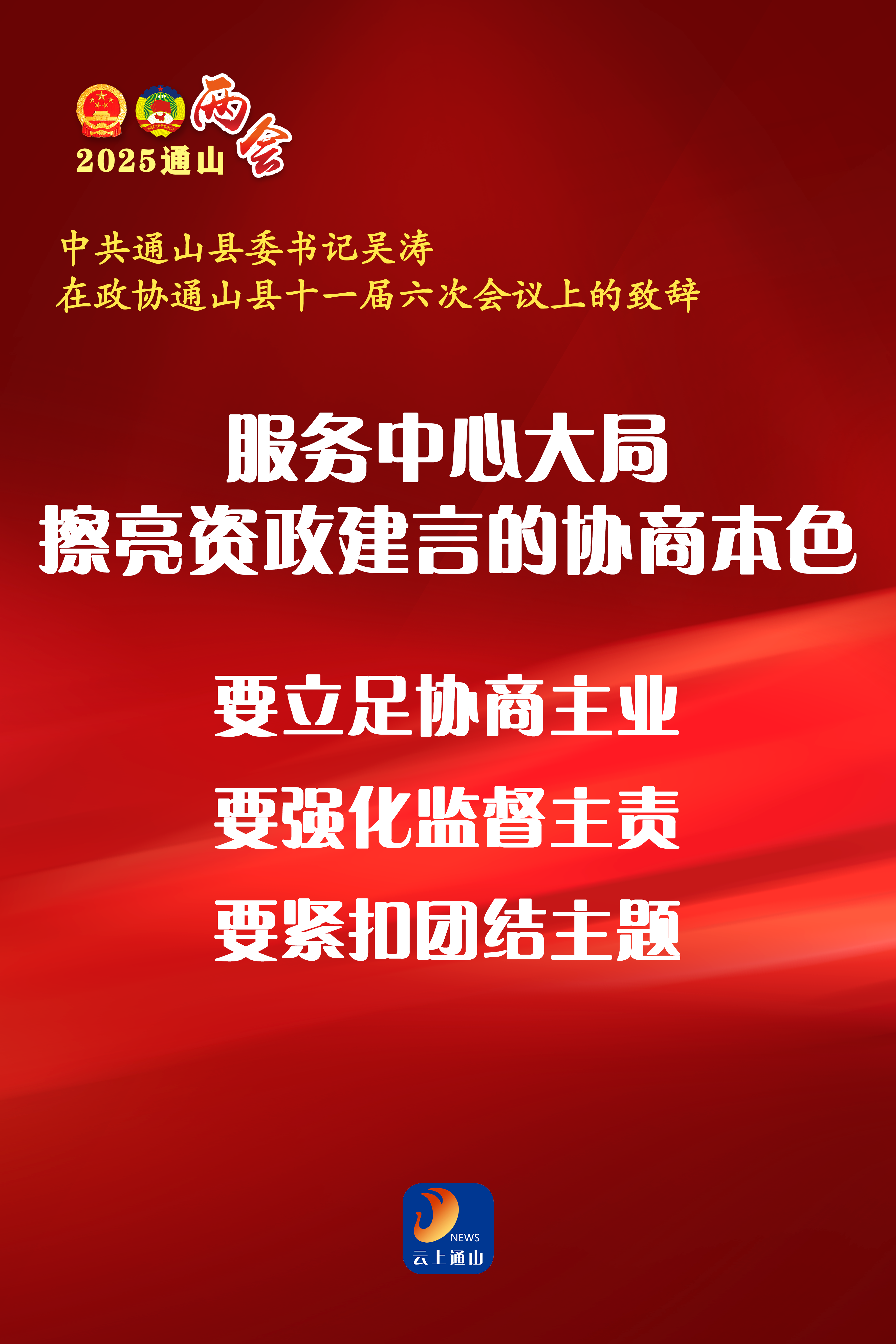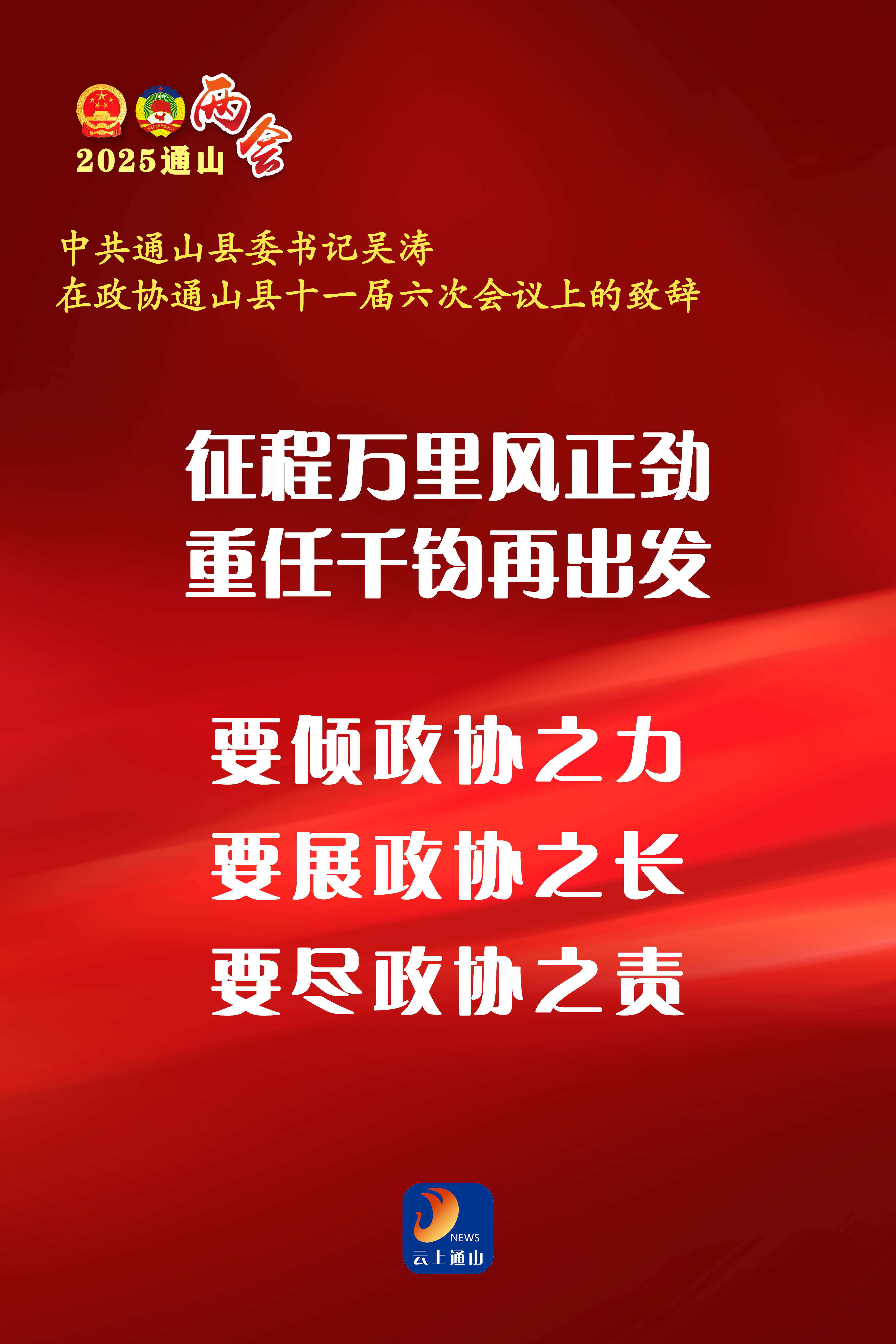 12月28日下午,中国人民政治协商会议通山县第十一届委员会第六次会议在县文体中心隆重开幕。县委书记吴涛代表中共通山县委向大会致辞,一起来看金句。