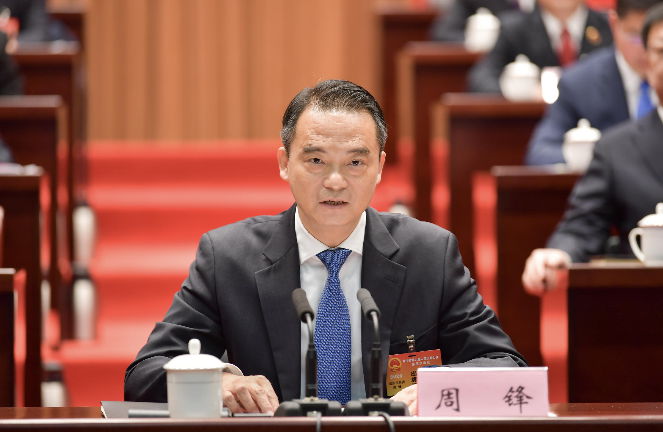 大会应到代表345人,实到316人,出席人数符合法定人数。上午8时30分,周锋宣布,咸宁市第六届人民代表大会第五次会议开幕。全体起立,奏唱国歌。