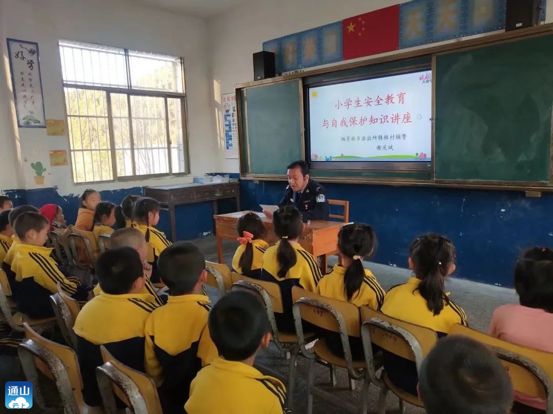 5月10日,杨芳林乡辅警谢庆斌走进株林小学,联合开展小学生安全教育与自我保护知识宣讲活动。