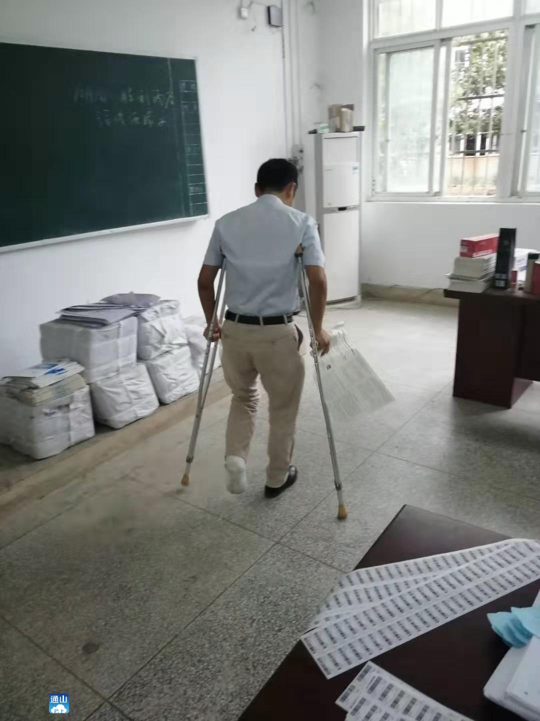 1月24日晚,正是大年夜阖家团圆的时候,徐程钢响应号召,主动参加一中宿舍楼住户排查工作,当他拖着疲惫的身体回家时,新年的钟声已经敲响。不管是上门排查,还是卡点值守,徐程钢从不提腿伤的事,面对防疫任务,总是一马当先,冲锋在前,大家都看在眼里,怜在心上,劝他保重身体,不要太操劳,但他总是一笑带过。这种主动奉献、恪尽职守的精神感染了很多一线防控的同事。